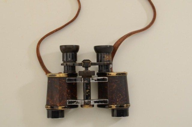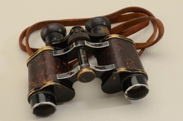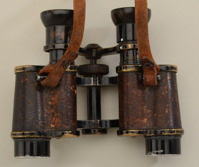 WW II era 8 X 24 binoculars by Wacht-Hensoldt with leather strap in overall good condition showing very good optics. Est.: $50-$75.