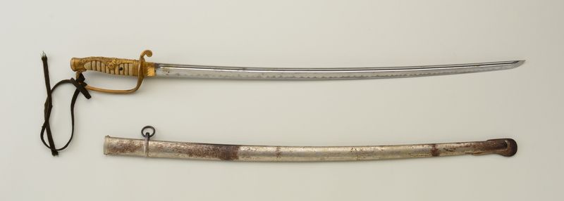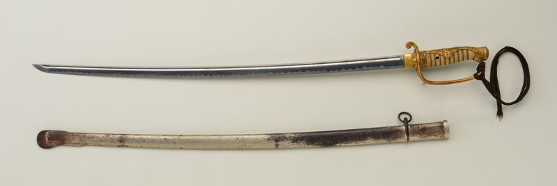 WW II era Japanese Police sword and scabbard; blade is overall very good to fine with very good grip and mounts; scabbard shows old flaking to nickel finish and scattered dark patina. Est.: $125-$250.