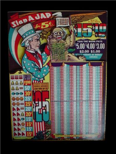 WW l l "Slap-a-Jap" punchboard with Tojo the Monk large board is built in layers, (3D) Fantastic rare piece