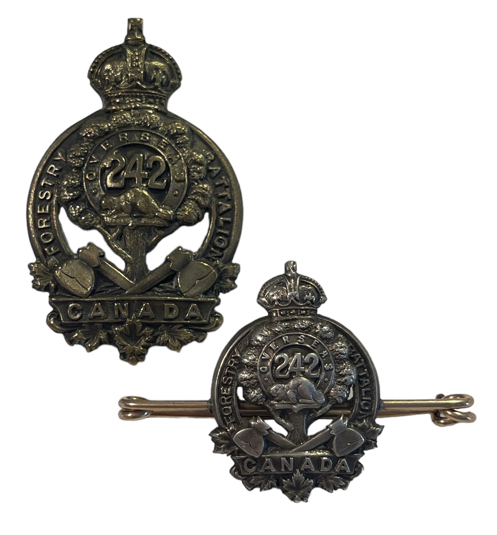 WW1 242nd Battalion, Canadian Forestry Battalion Cap & Sweetheart Badge Lot