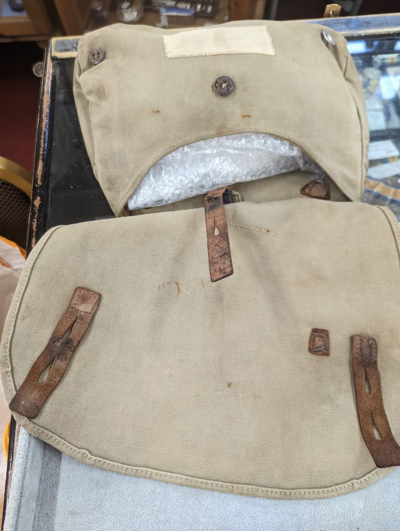THESE BAGS WERE ATTACHED TO A SOLDIERS WAISTBELT TO CARRY THE SOLDIERS RATIONS INTO THE FIELD