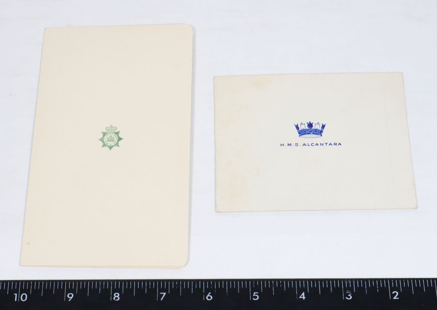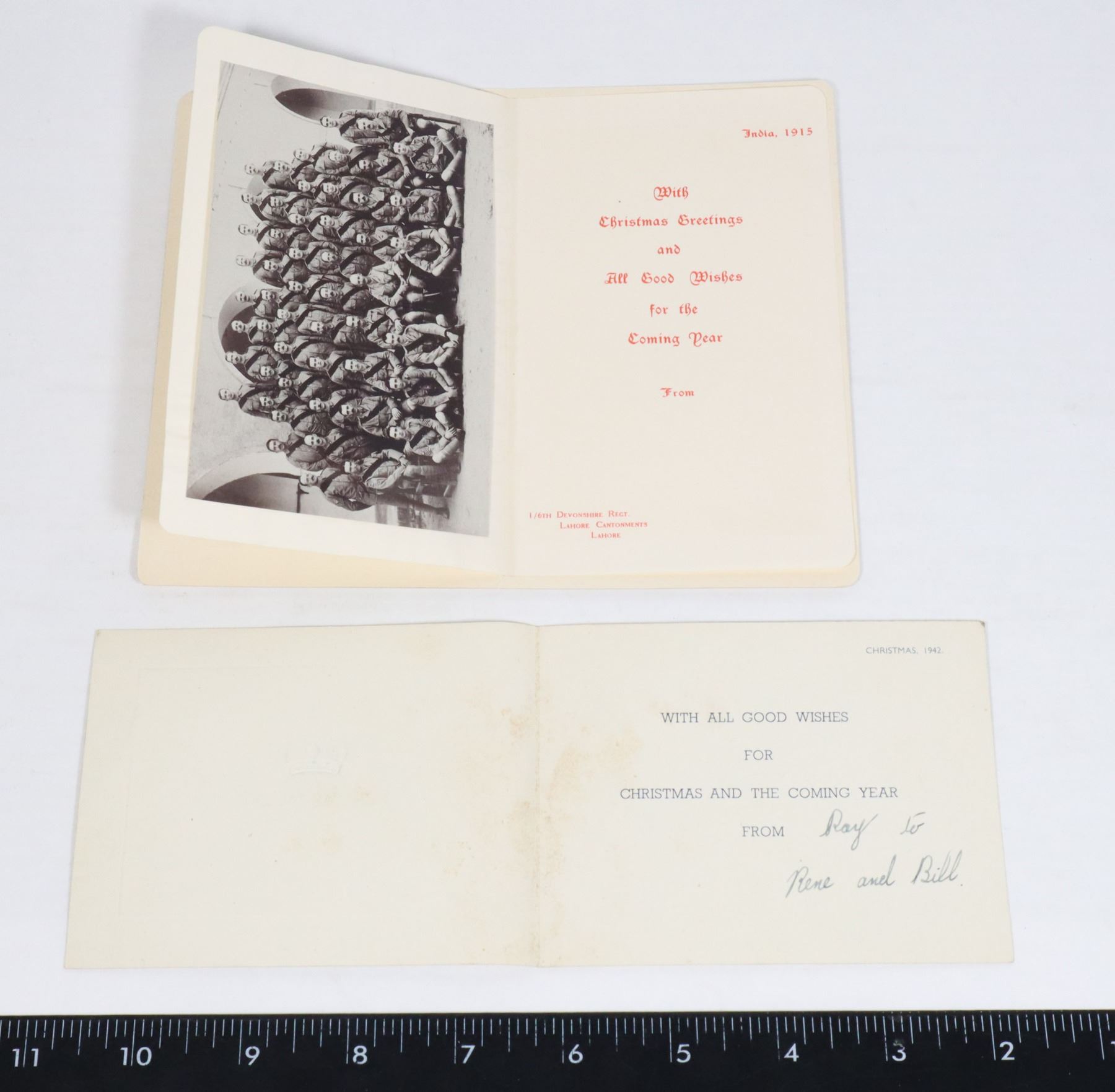 CHRISTMAS CARD 1/6TH DEVONSHIRE REGIMENT PHOTO INSIDE CARD WORLD WAR ONE AND WW2 1942 CHRISTMAS CARD HMS ALCANTARA NAVY BRITISH ROYAL NAVY ARMED MERCHANT CRUISER TROOPSHIP WORLD WAR TWO SIGNED