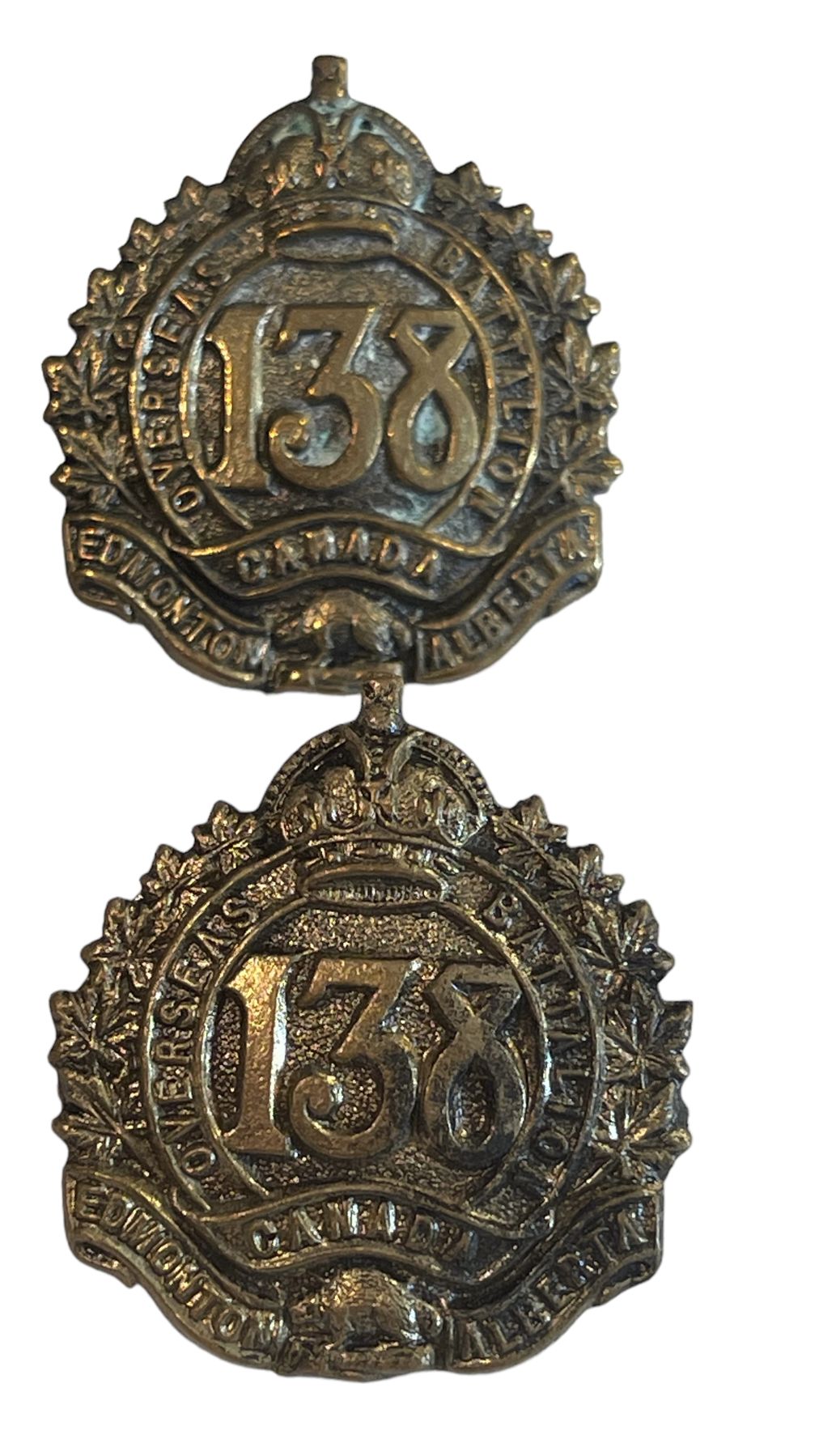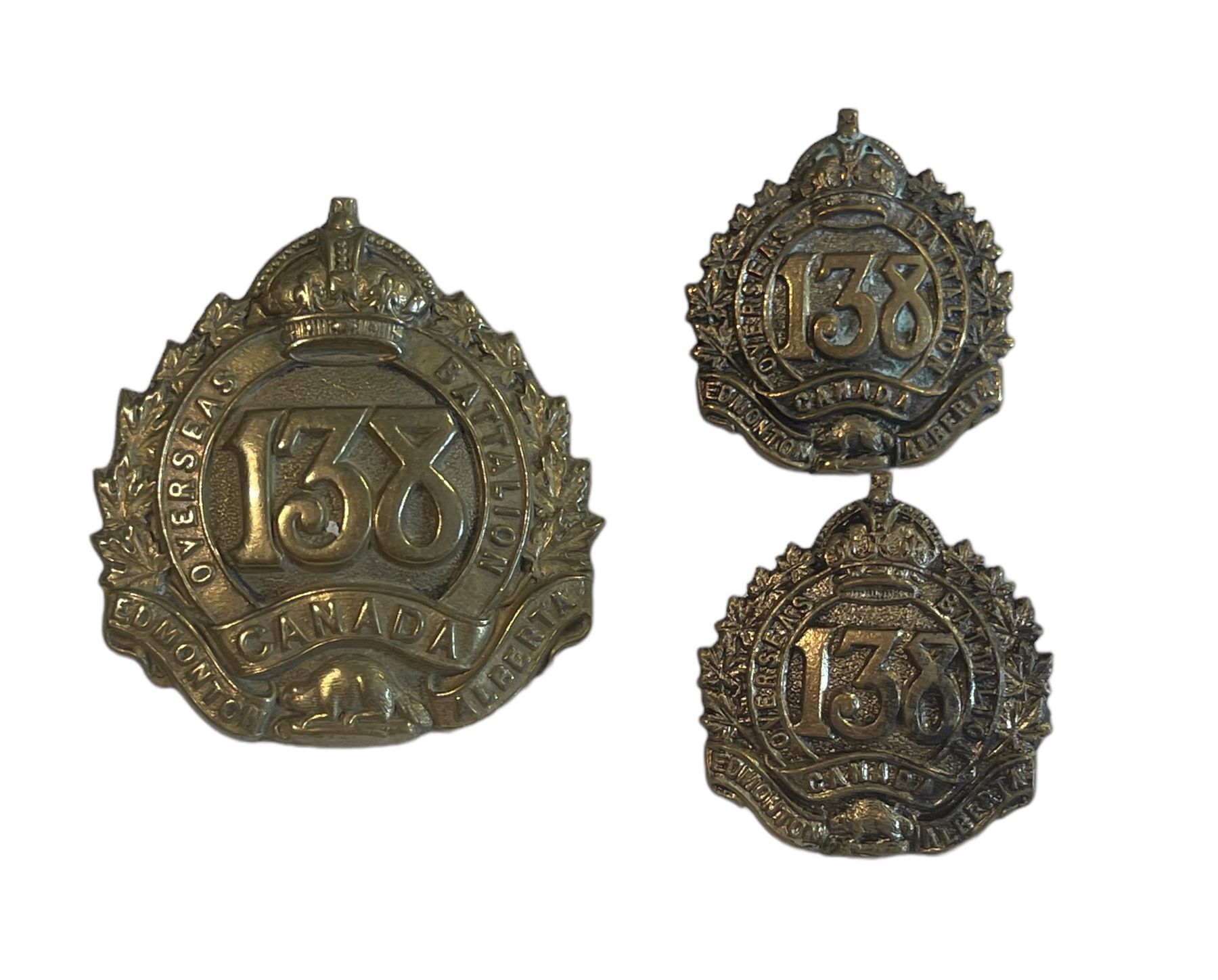 WW1 CEF 138th Battalion, Edmonton, Cap and Collar Badge Lot