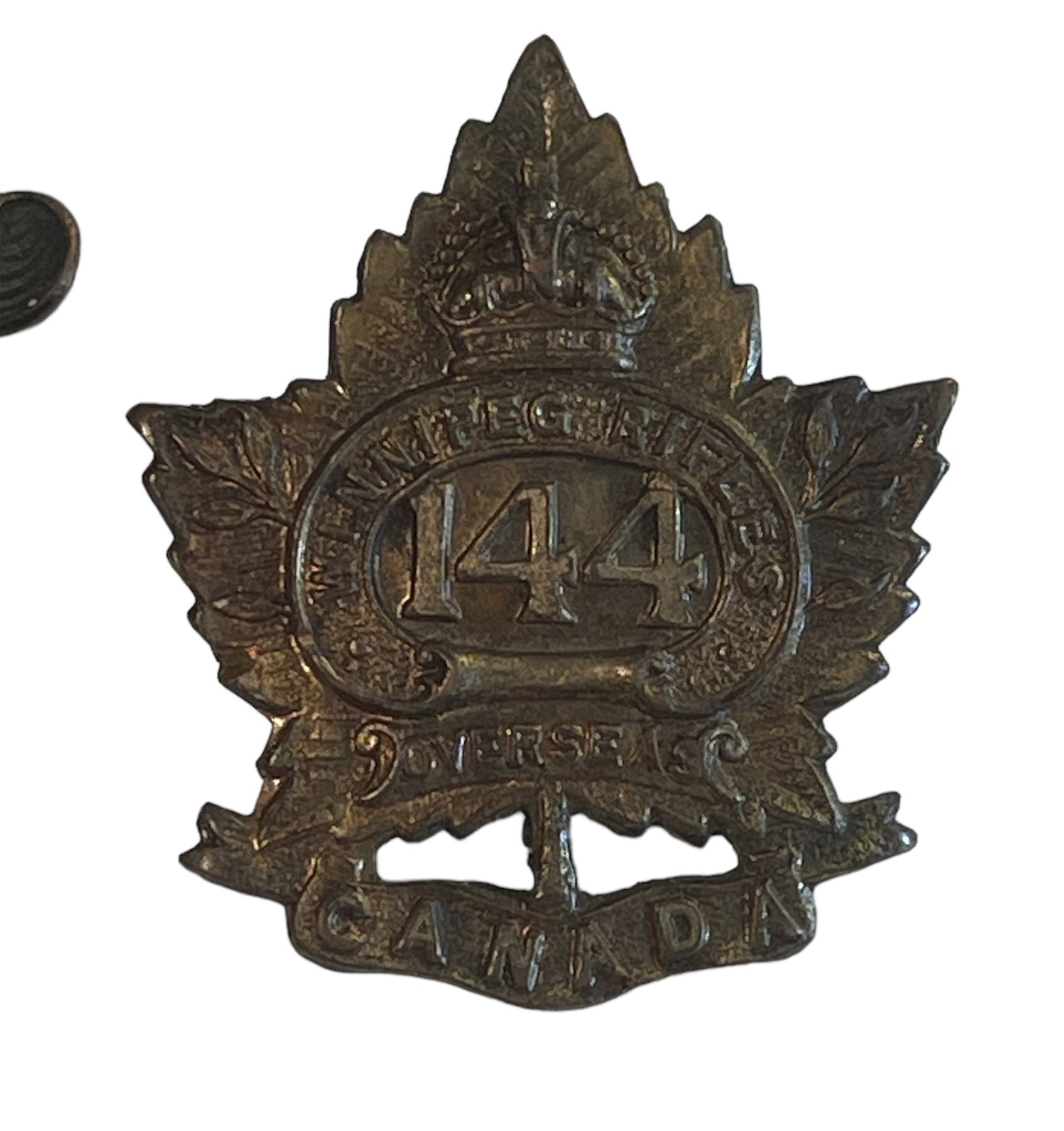 WW1 CEF 144th Battalion, Winnipeg Rifles, Cap and Collar Badge Lot
