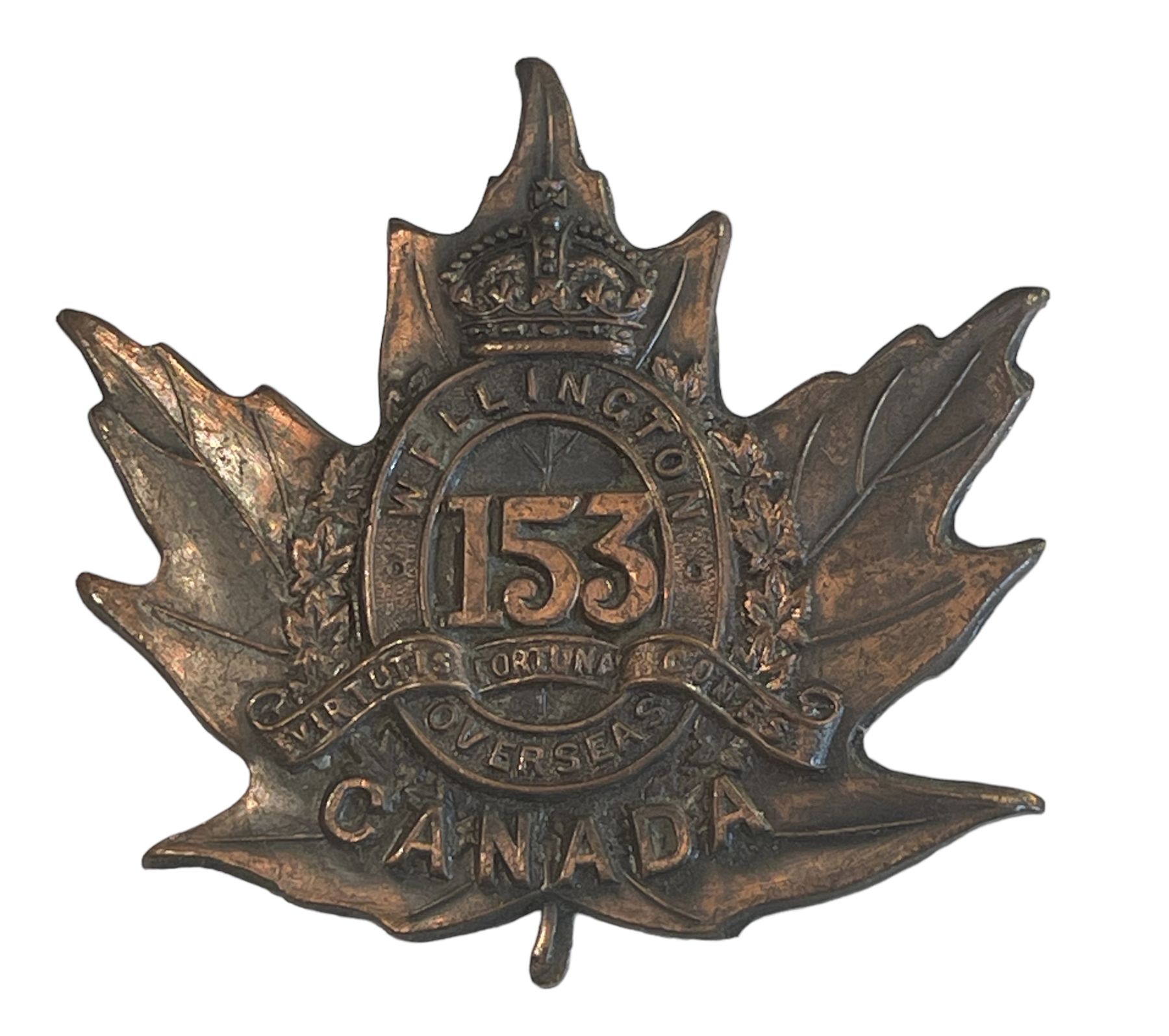 WW1 CEF 153rd Battalion, Wellington County, Cap Badge