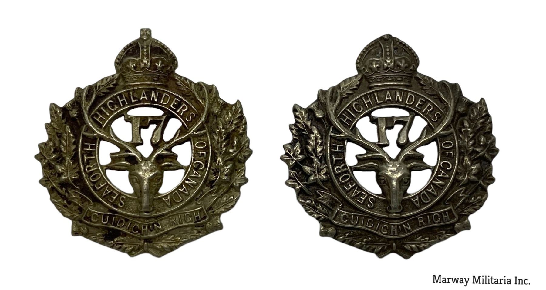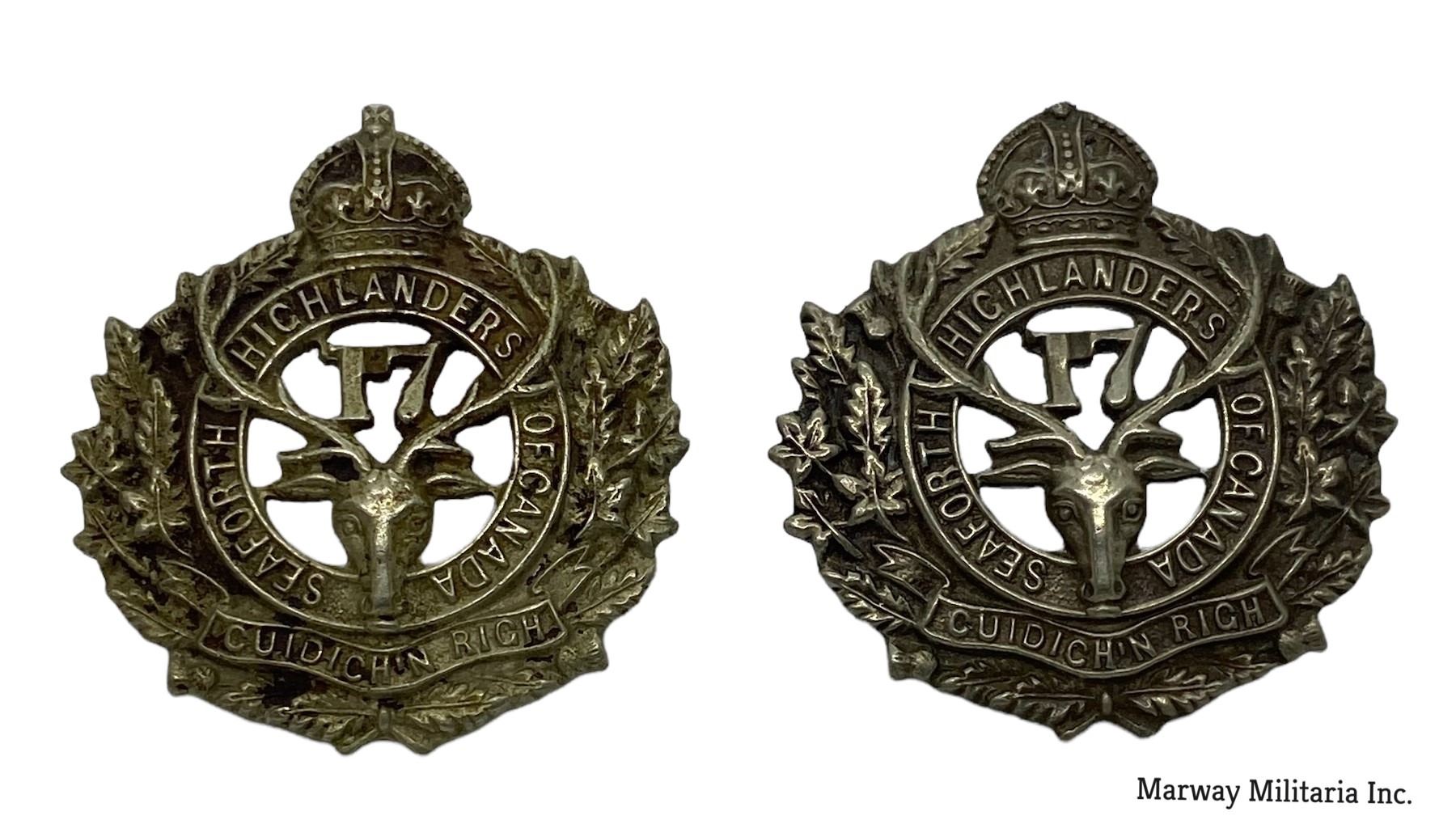 Seaforth Highlanders. White metal with Lug fasteners. Off tone from one another. One missing tip from crown.