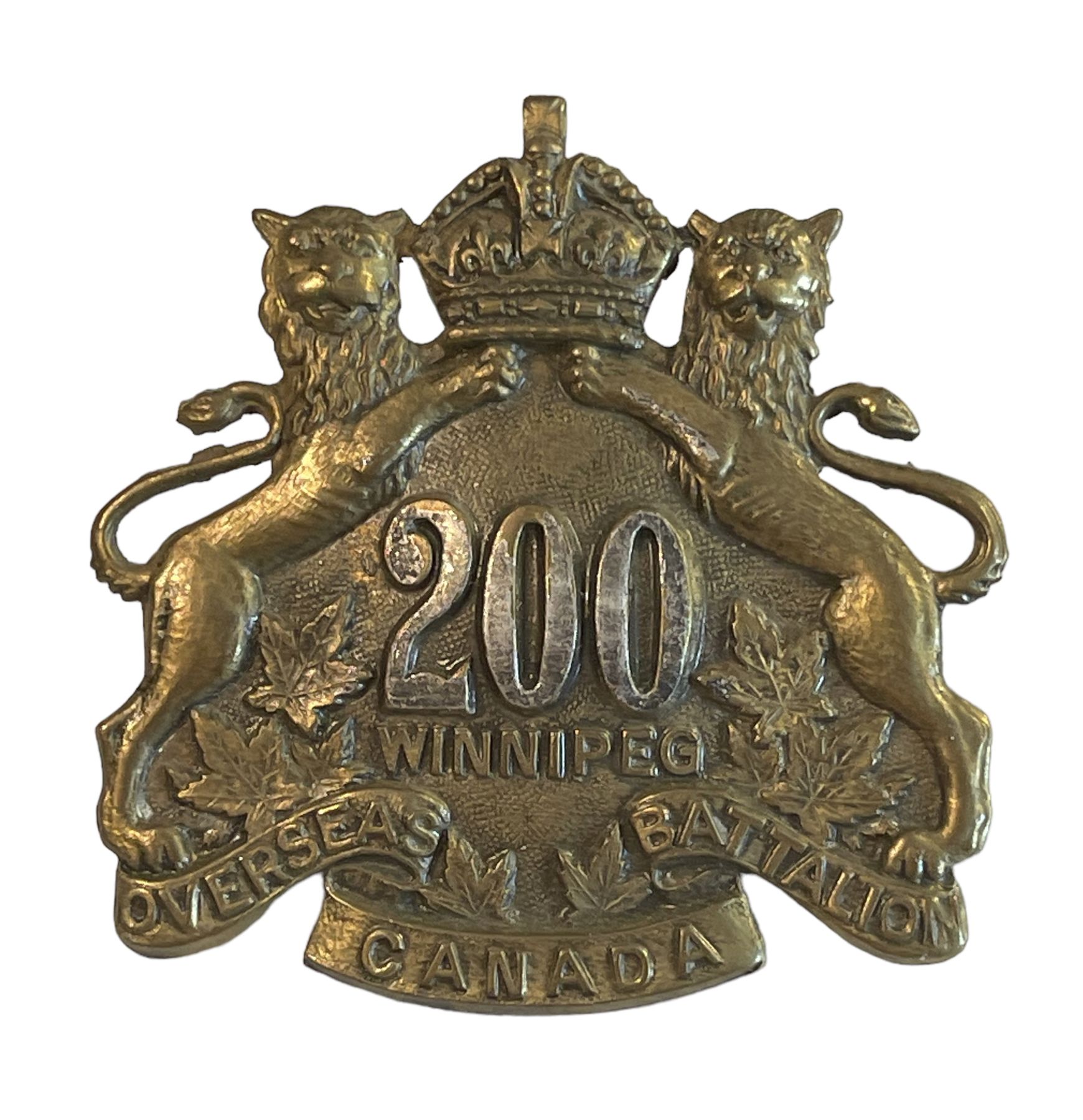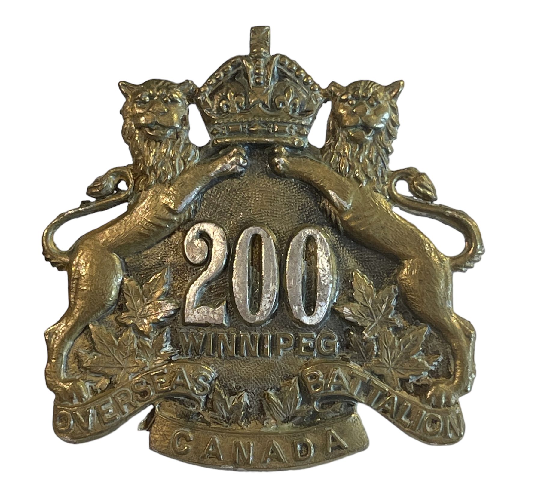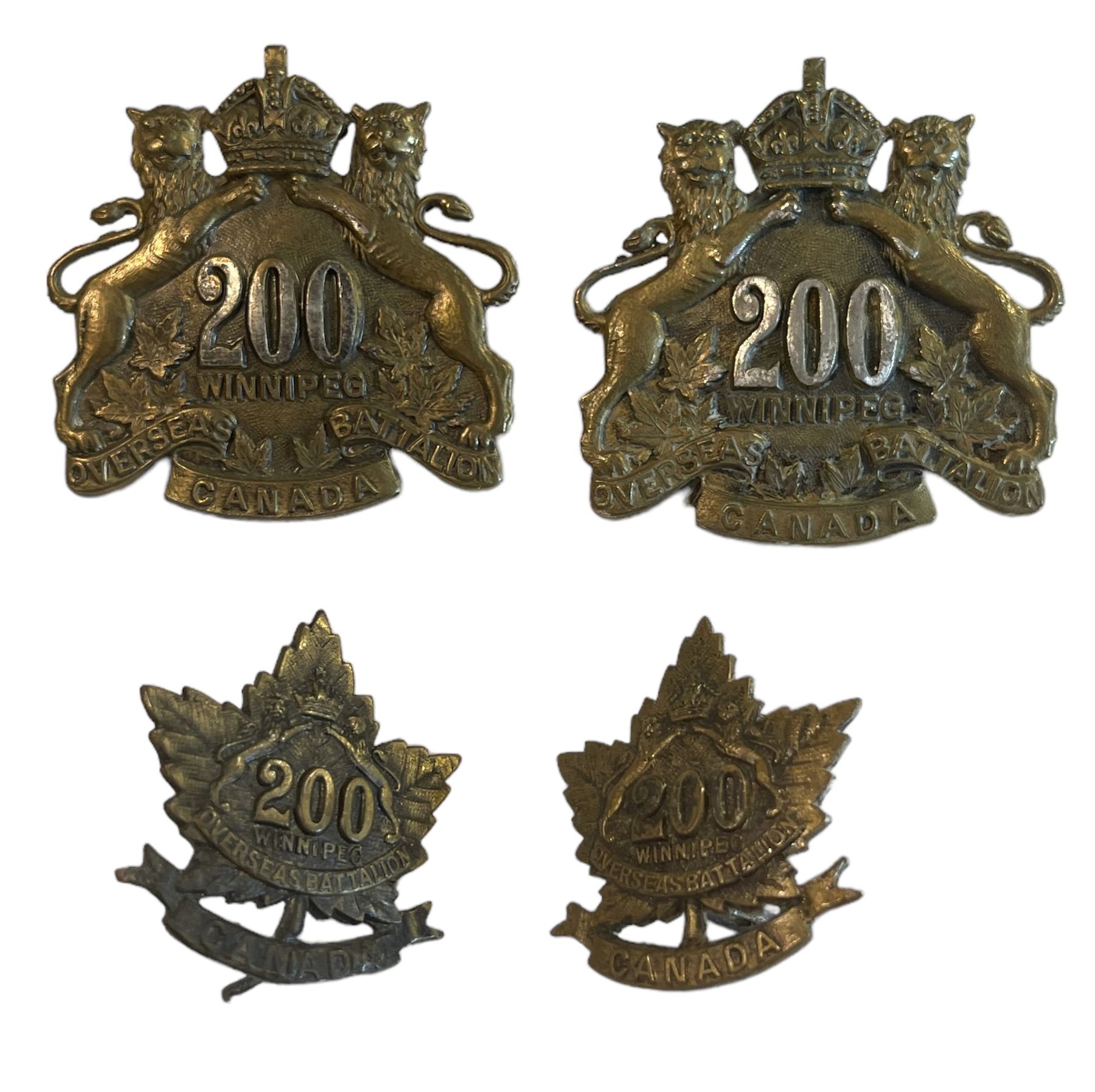 WW1 CEF 200th Battalion, Winnipeg, OFFICERS Cap & Collar Badge Lot