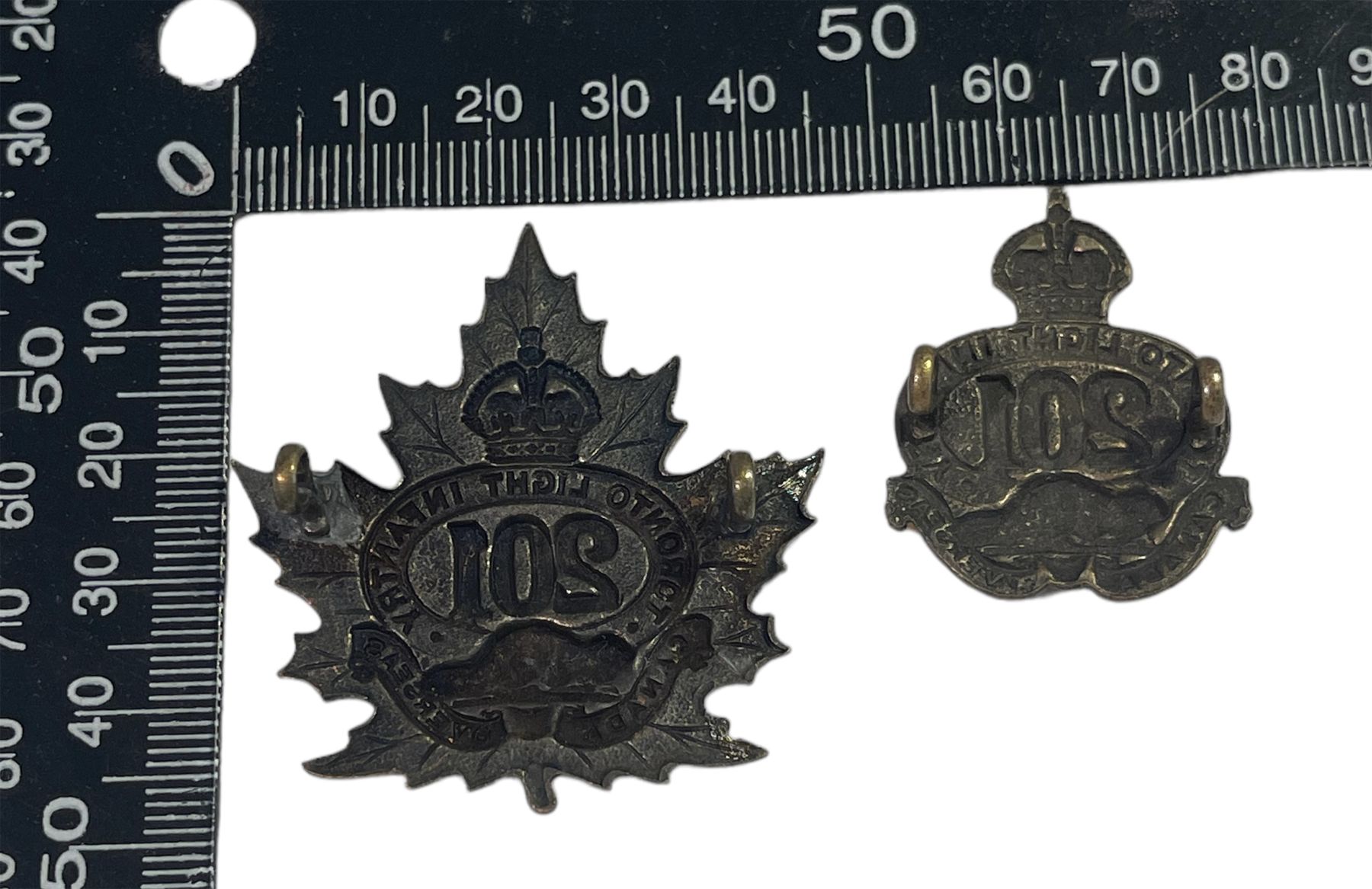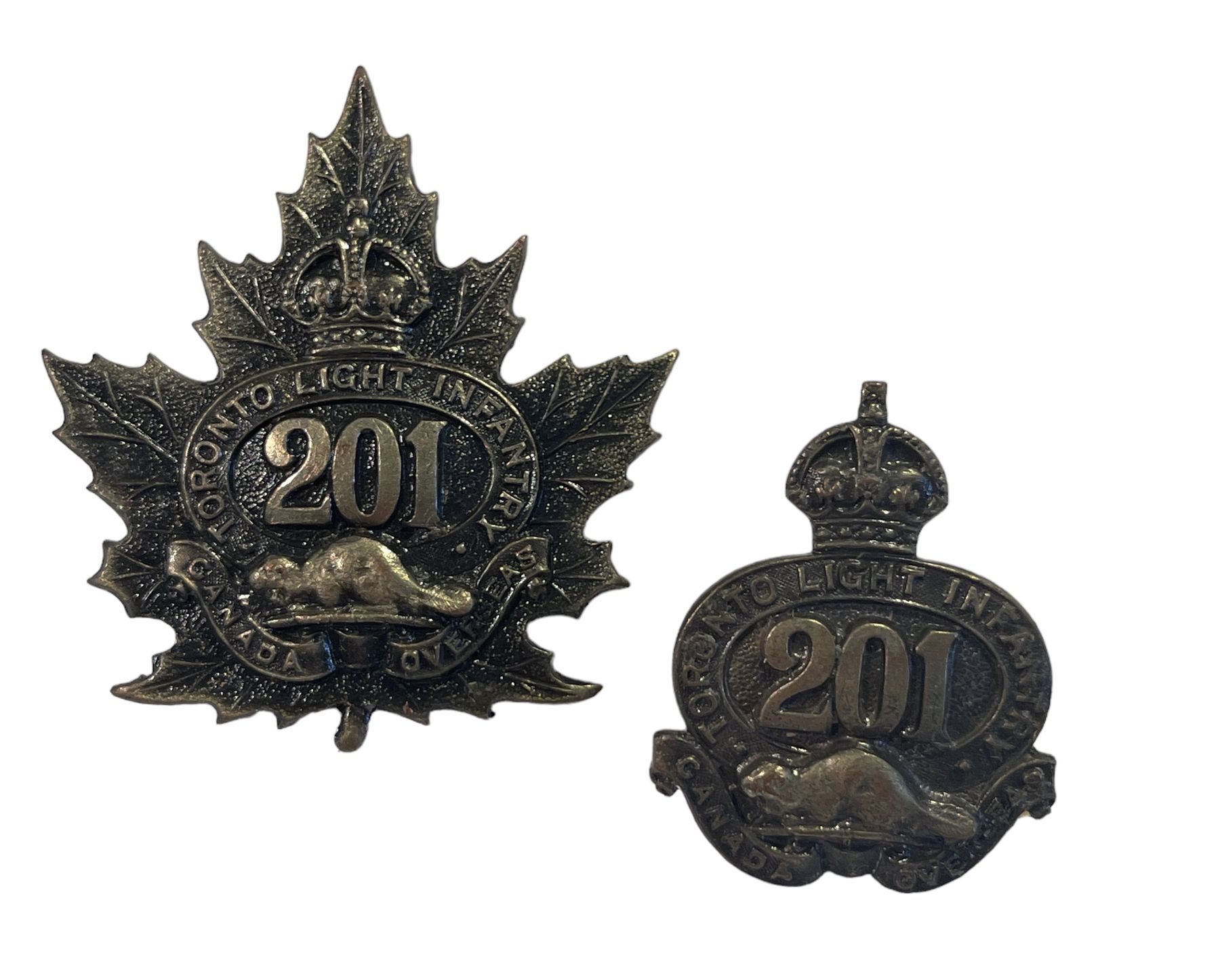 WW1 CEF 201st Battalion, Toronto Light Infantry Cap & Collar Badge