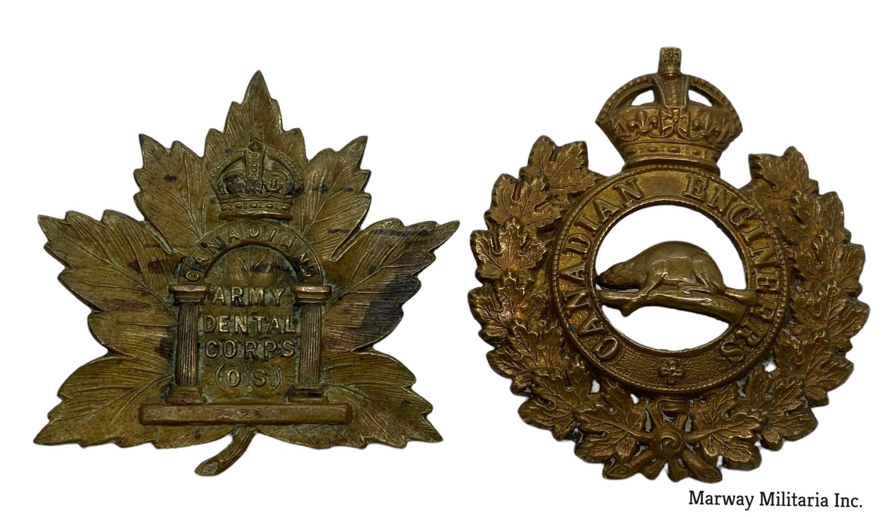 Canadian Dental Corps and Canadian Engineers. Each with lug fasteners. The Engineers is Gaunt maker stamped.