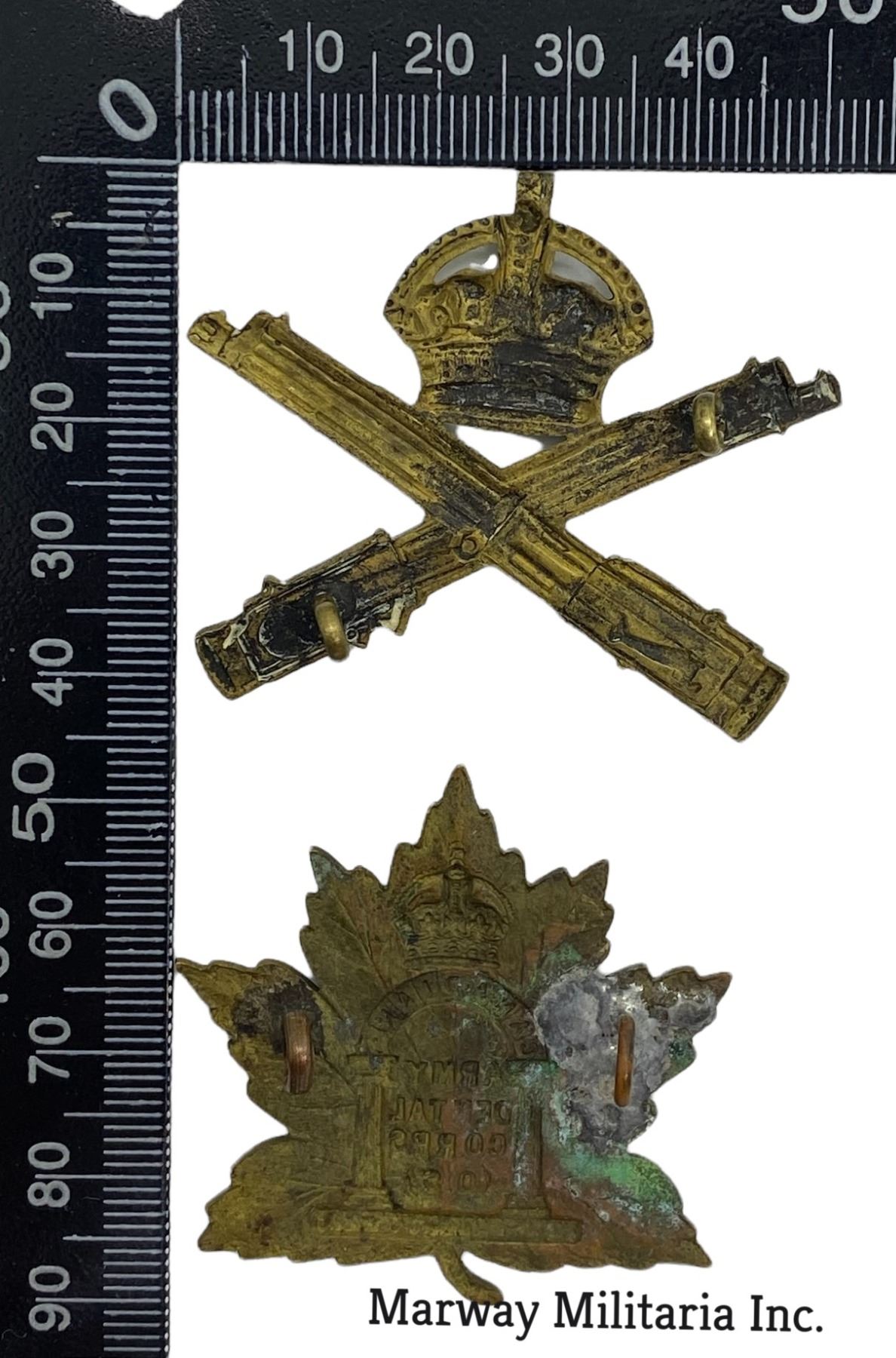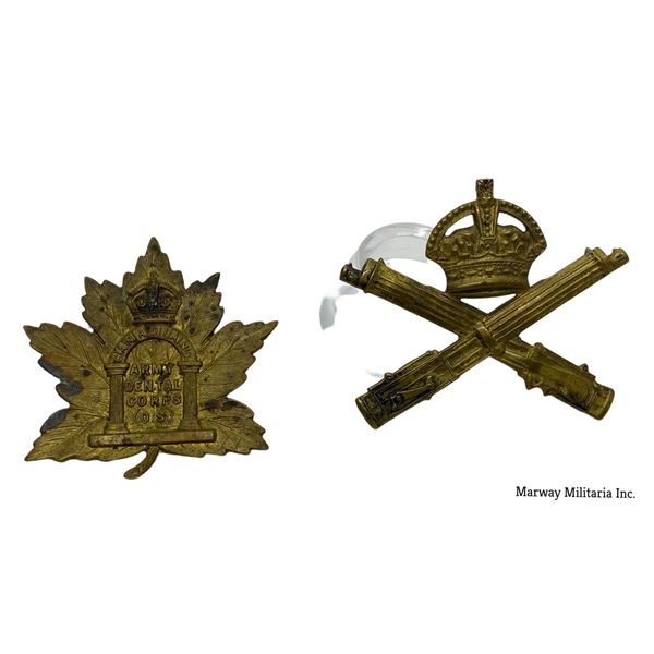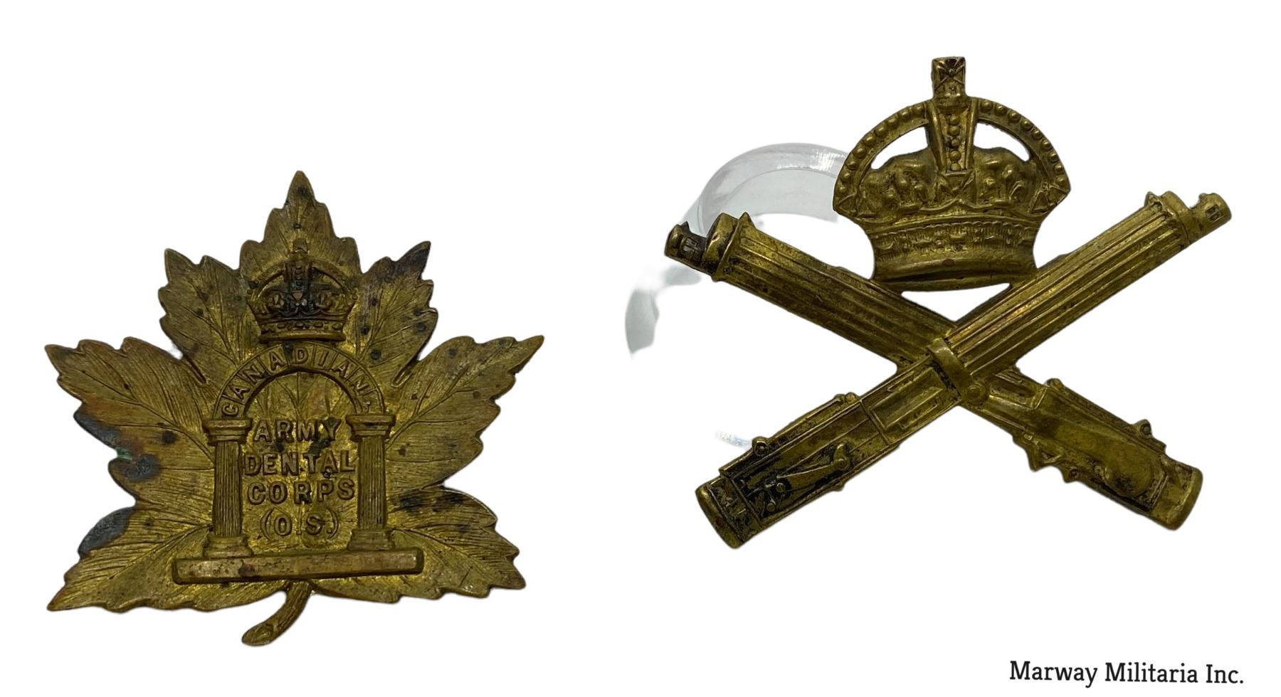 Canadian Dental Corps and Machine Gun Regiment, Both in Brass metal. Dental is replaced lug fasteners.