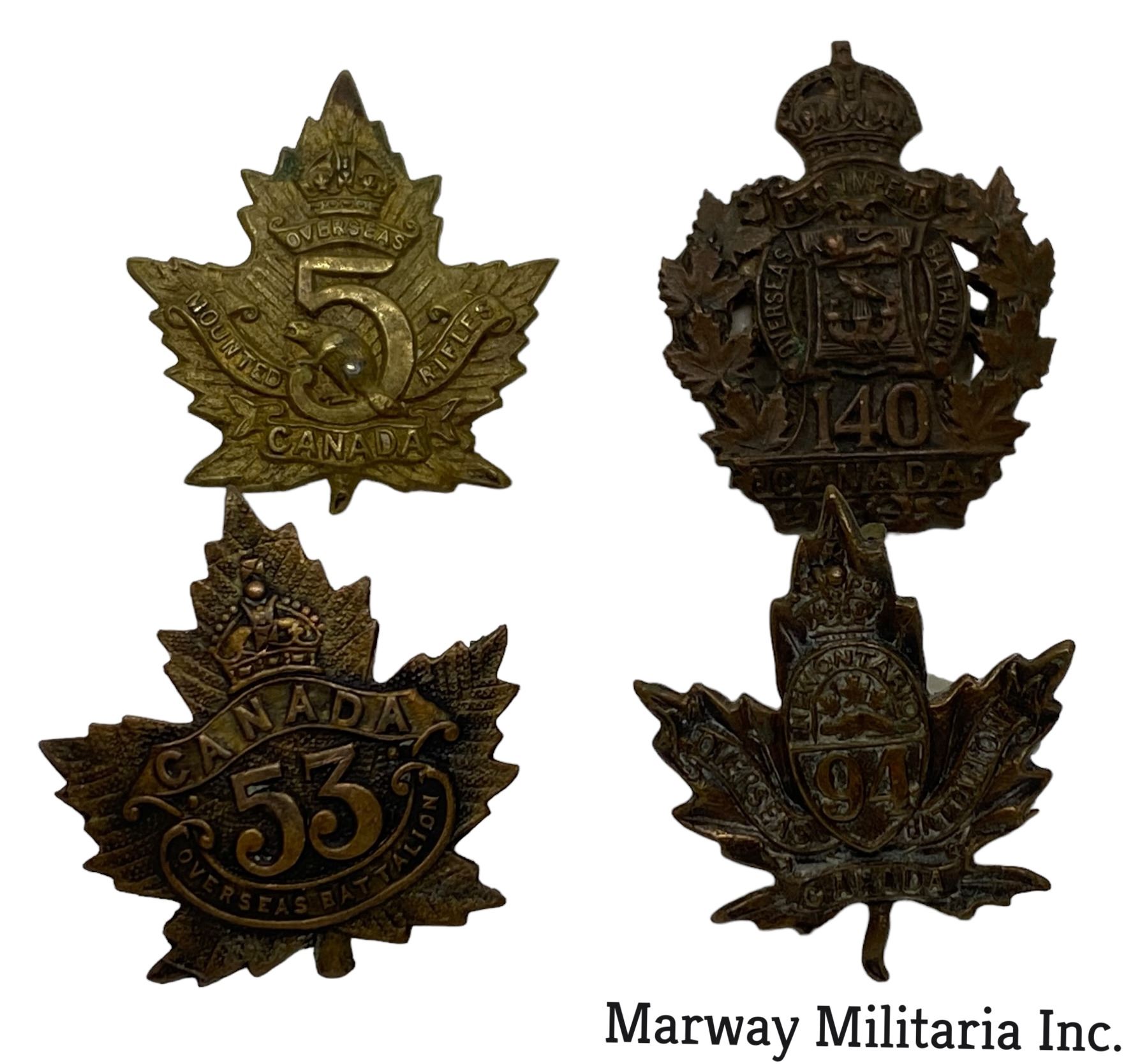 140th, 94th, 53rd, 5th Mounted Rifles. Various conditions of fasteners.