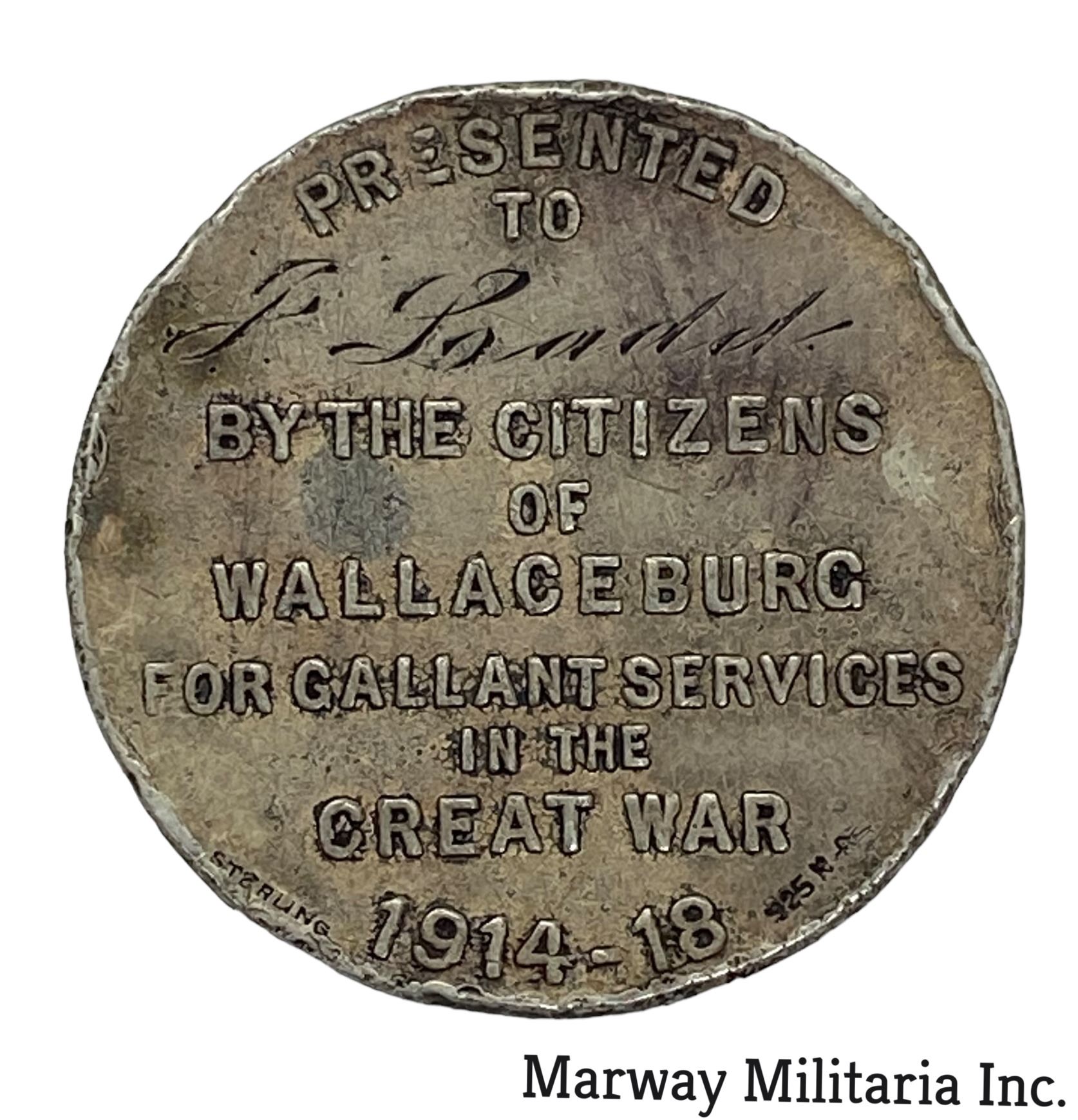 WW1 CEF Welcome Home Medallion, Wallaceburg Ontario