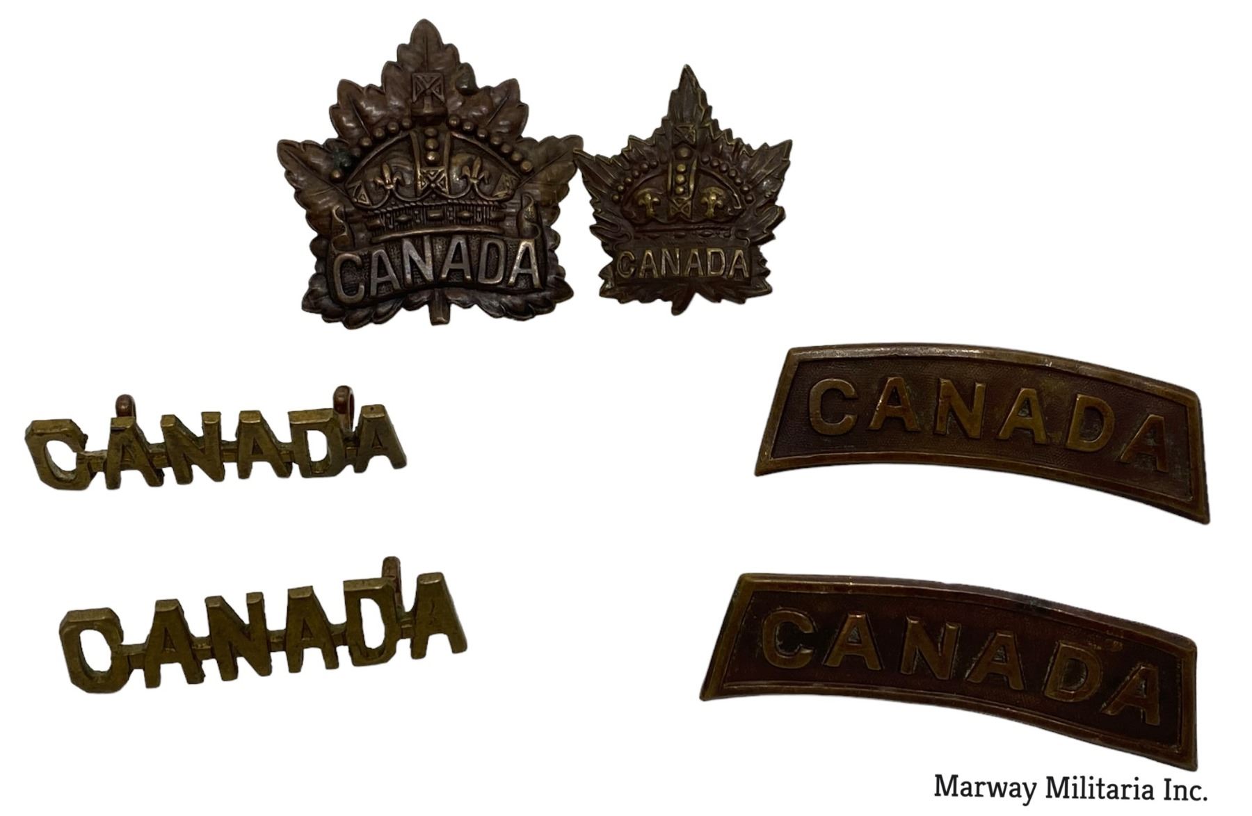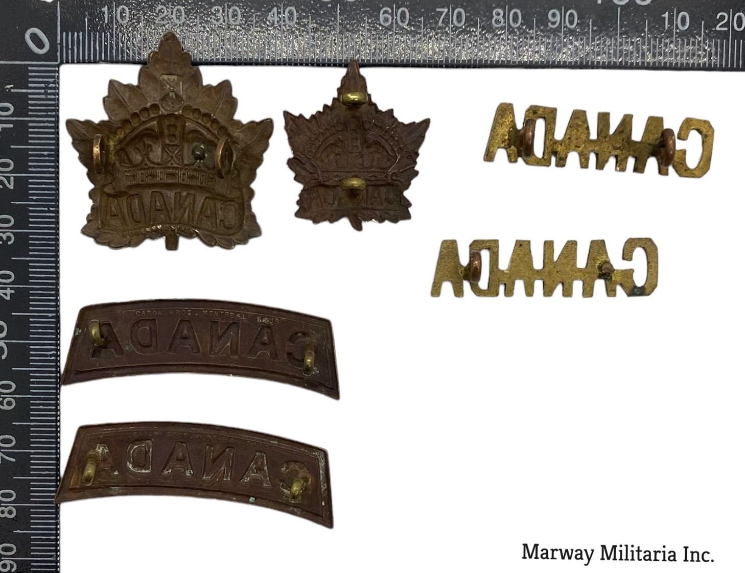 Lot of 6. WW1 era. Cap, Collar and Shoulder Titles.