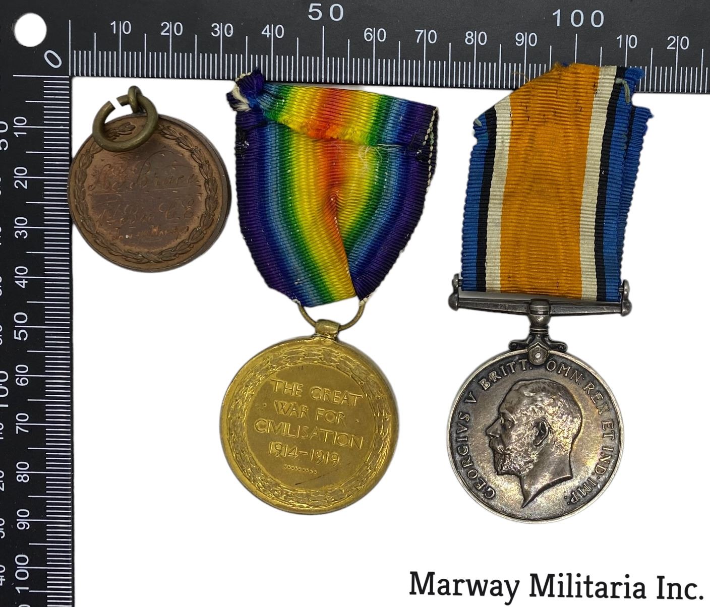 Silver War Medal and Victory Medal are impressed to 725107 SJT. A G. BRUCE C.E. Formally 109th Battalion. Welcome Home medal VICTORIA COUNTY'S WELCOLME TO RETURNED SOLDIERS CEF. Engraved on back to Bruce. Lot of 3