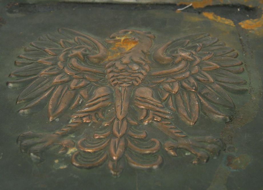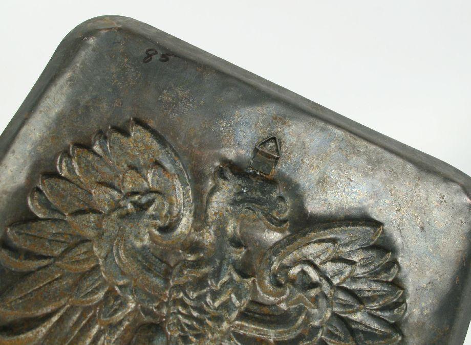 A WW1 U.S. Army Doughboy helmet parkerized with liner and chin strap , some denting, also a Imperial Germany Eagle copper plaque measuring 11x8 inches.