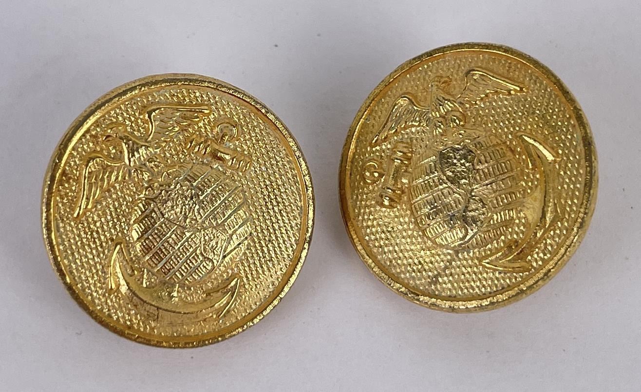 Very nice pair of WW1 USMC collar discs. Matching pair with great patina. Scarce