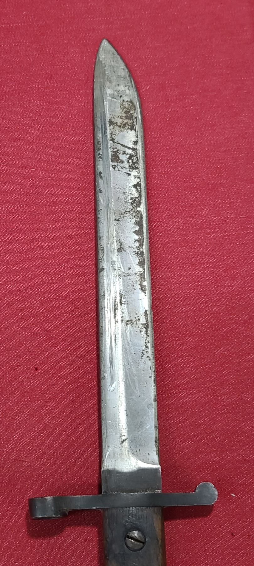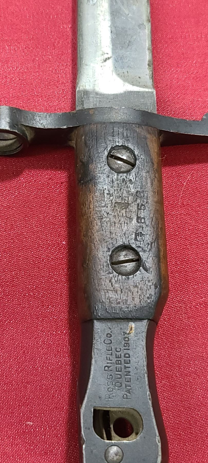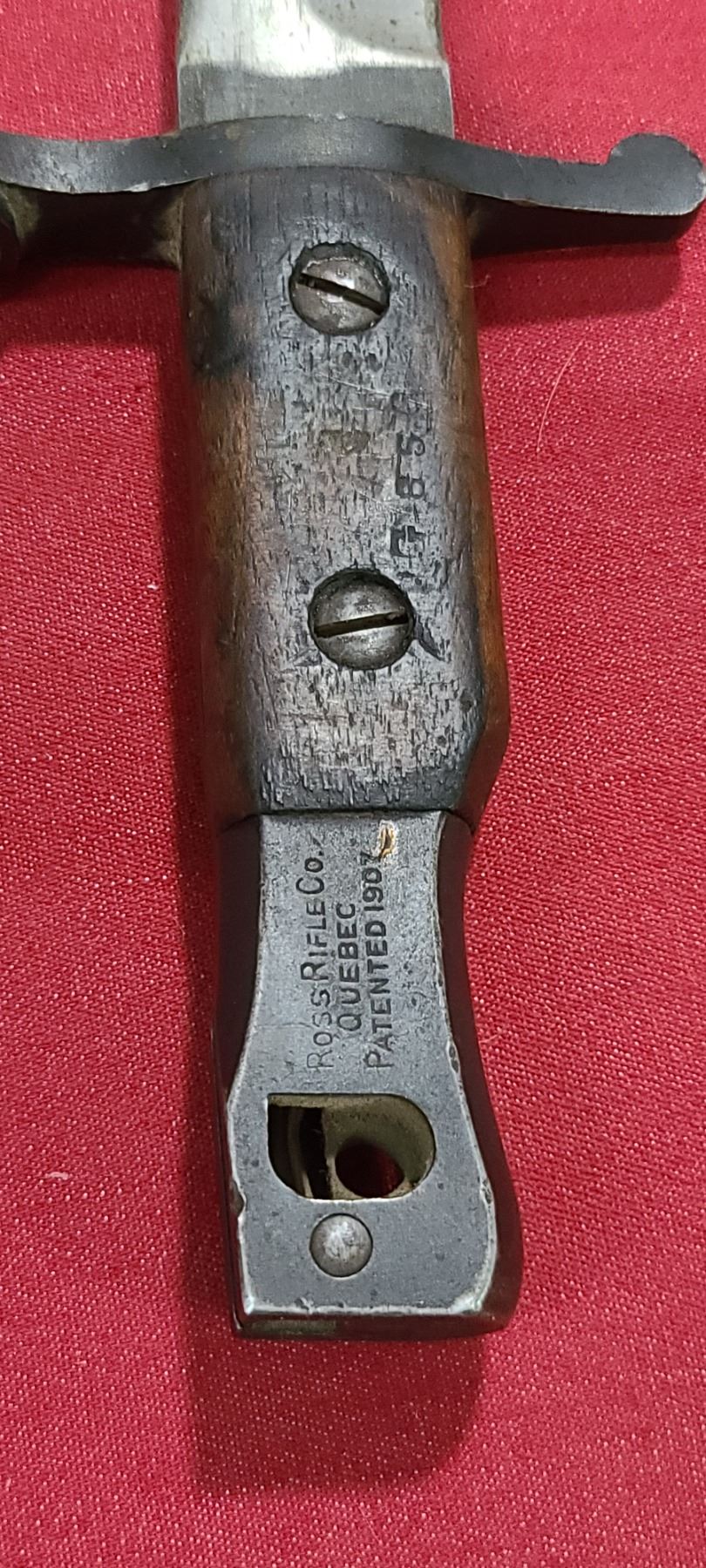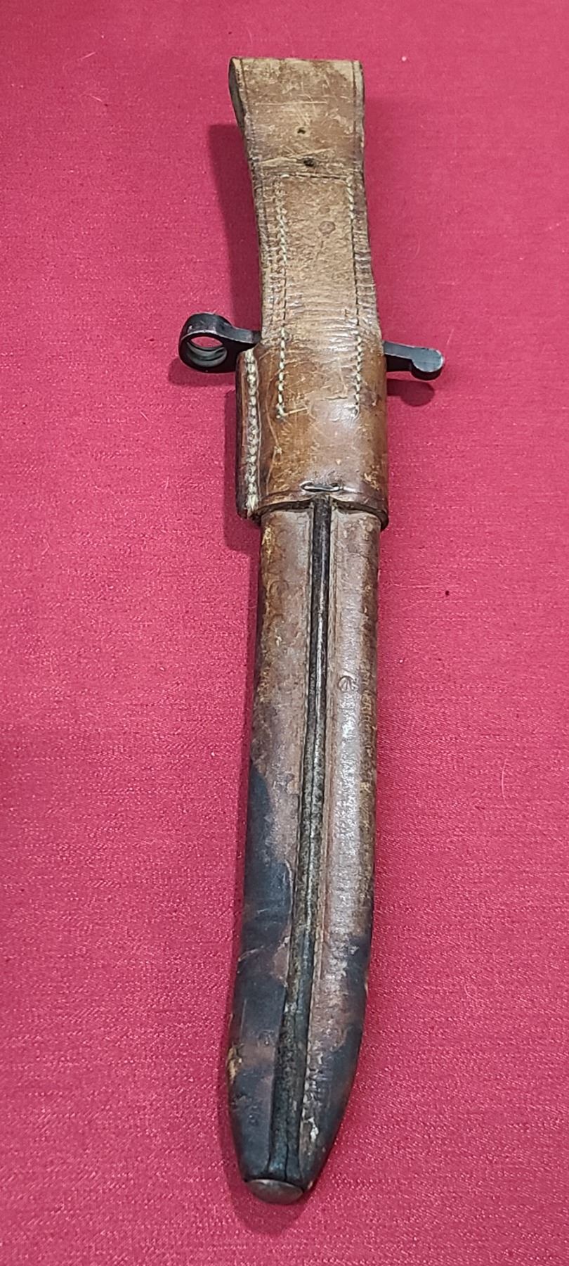 WW1 ROSS RIFLE CO BAYONET FOR ROSS MKIII COMES WITH ORIGINAL SHEATH - MISSING BAYONET LUG BOLS - PLEASE SEE IMAGE - PEN MARKS MISSING PART