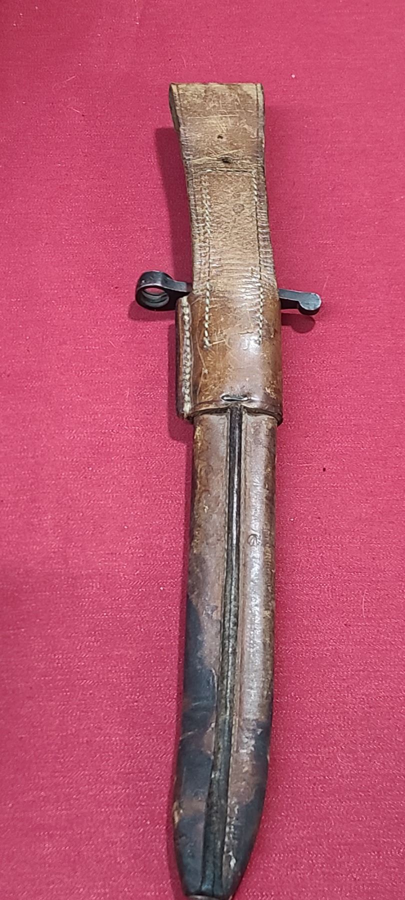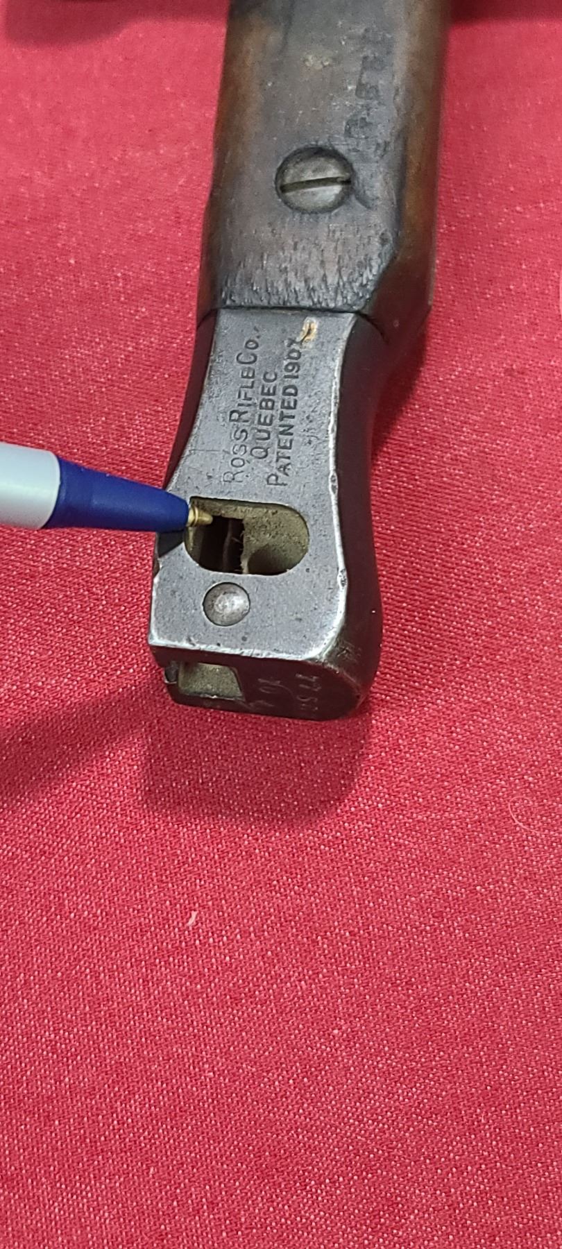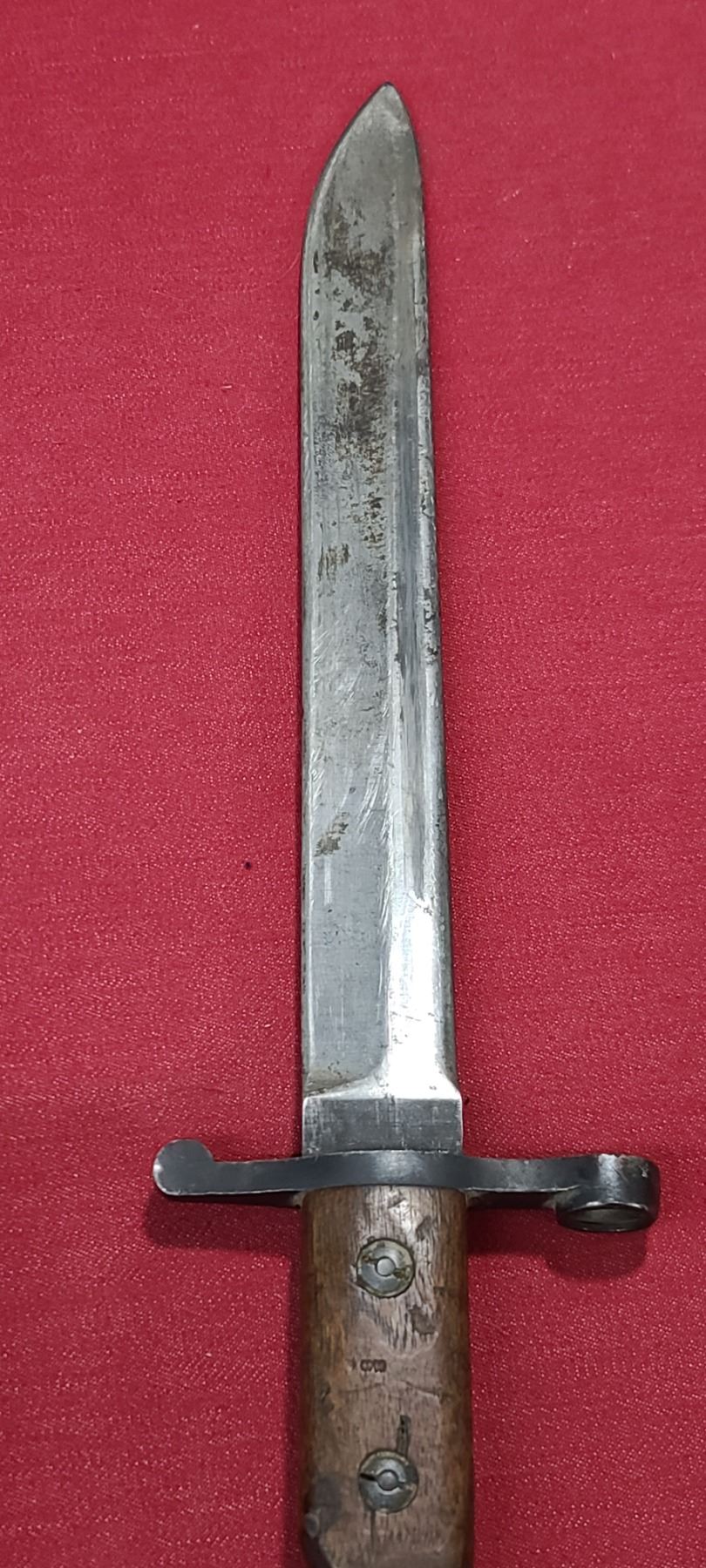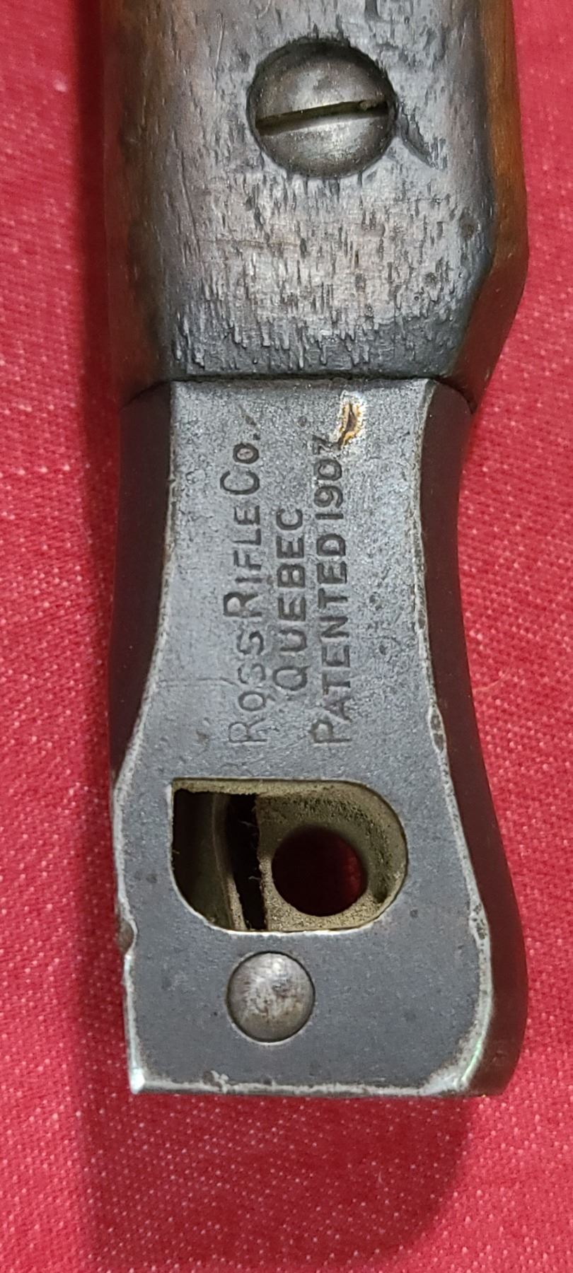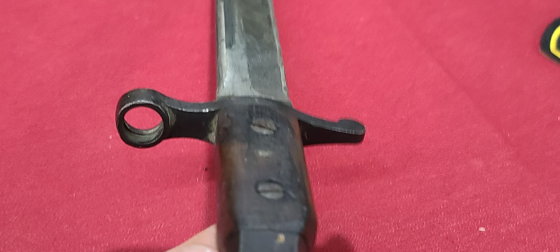 WW1 ROSS RIFLE CO BAYONET FOR ROSS MKIII COMES WITH ORIGINAL SHEATH - MISSING BAYONET LUG BOLS - PLEASE SEE IMAGE - PEN MARKS MISSING PART