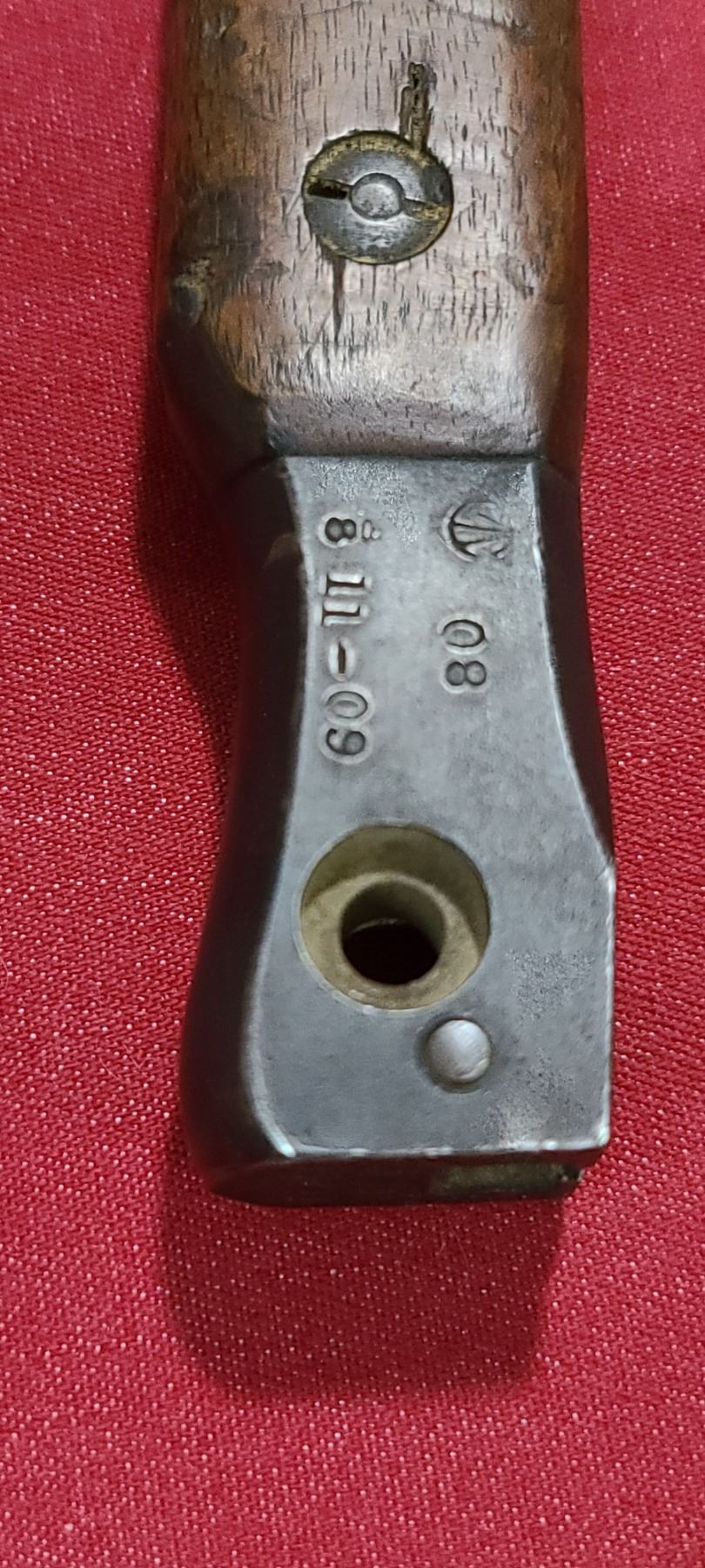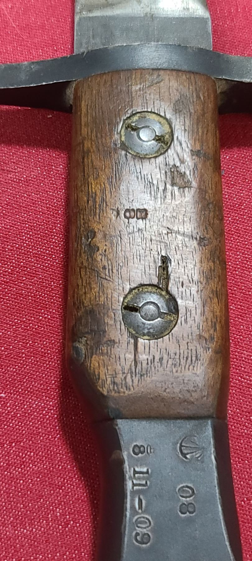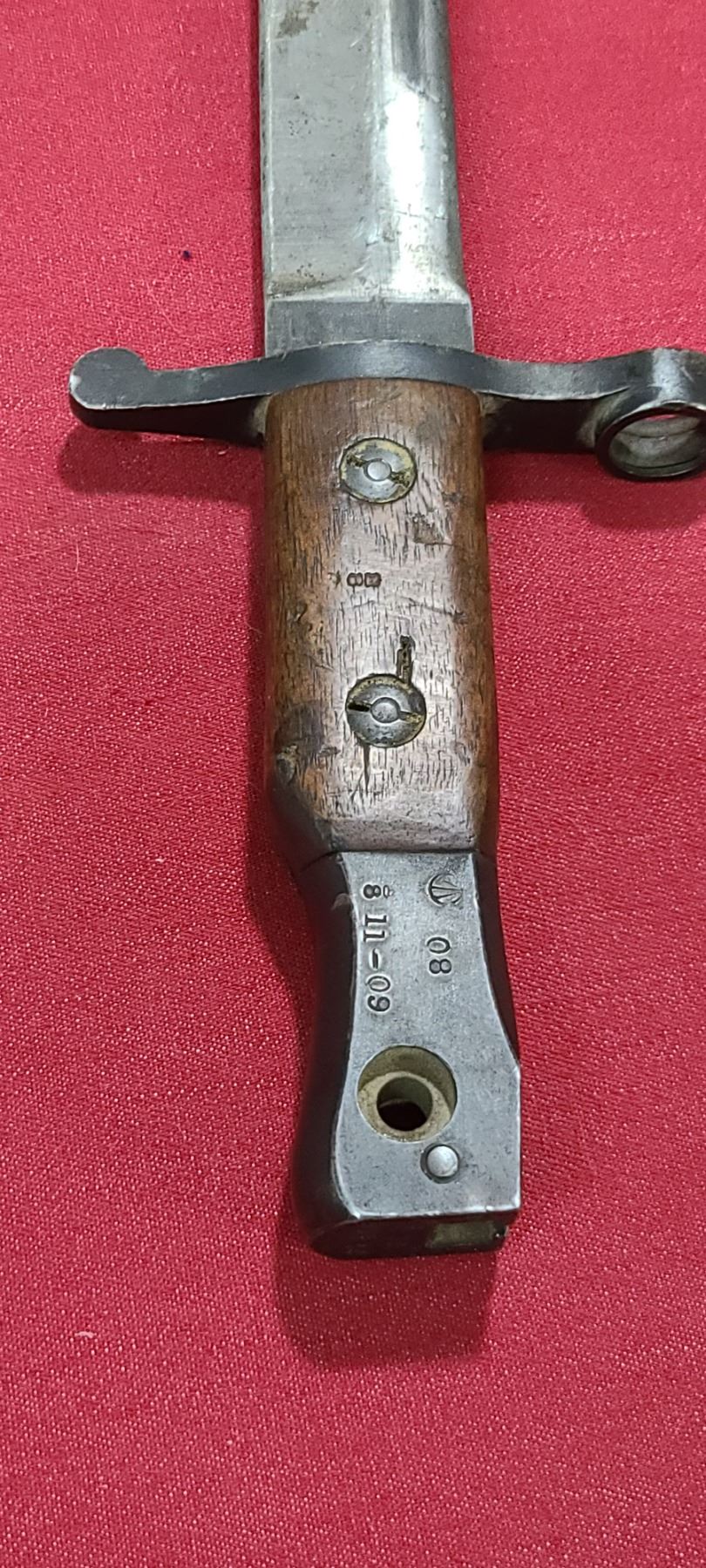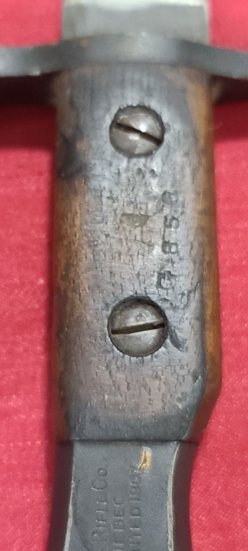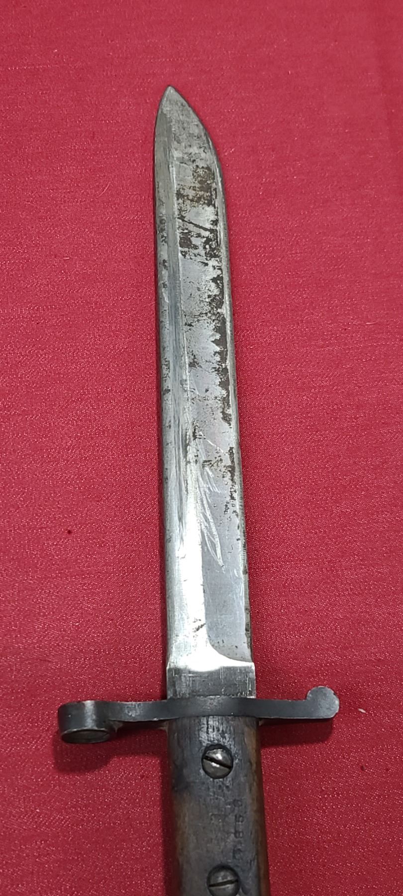 WW1 ROSS RIFLE CO BAYONET FOR ROSS MKIII COMES WITH ORIGINAL SHEATH - MISSING BAYONET LUG BOLS - PLEASE SEE IMAGE - PEN MARKS MISSING PART