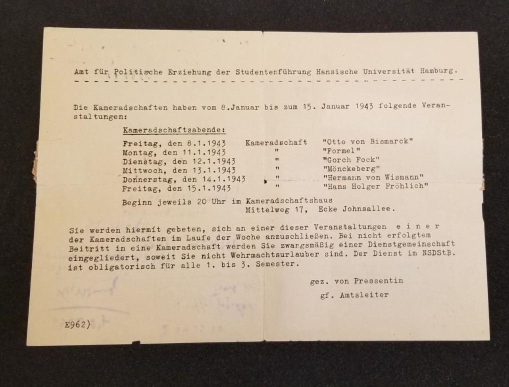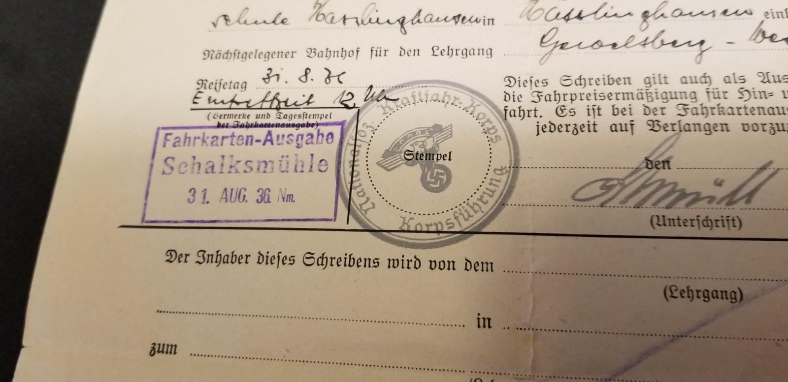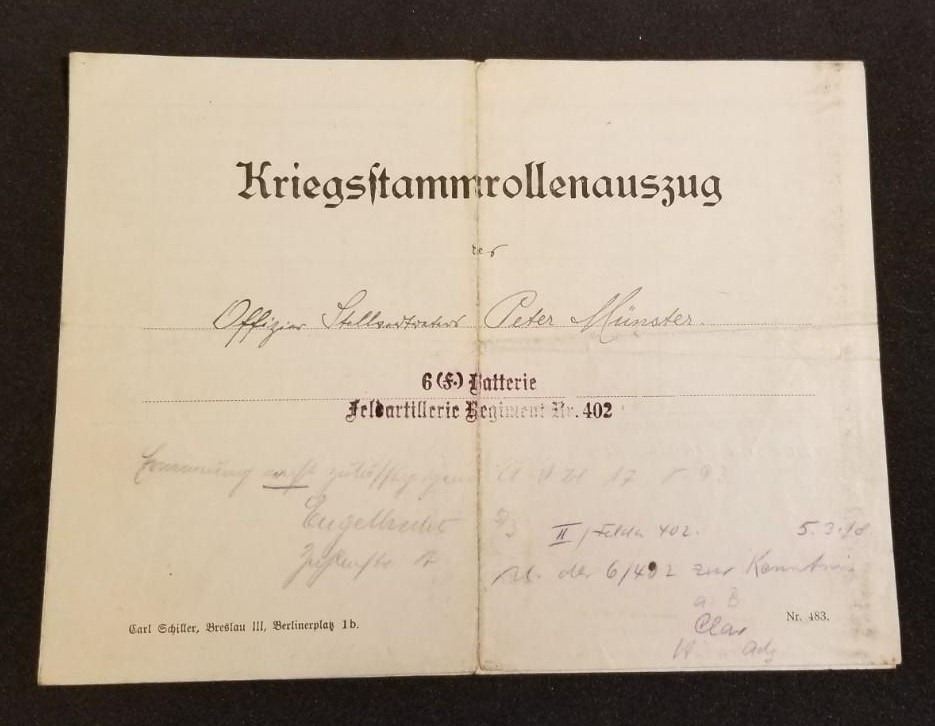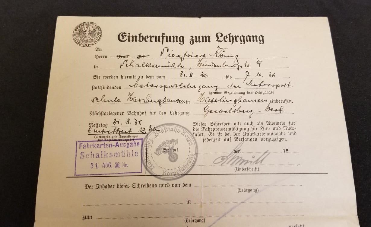 WW1 WW2 Paper documents stamps Third reich NSKK Imperial German paper lot. Nice paper lot of WW1 & WW2 German documents. Includes WW1 German Batterie Feldartillerie regiment # 402. and the NSKK motor sports school document along with the stamped envelope. VG condition lot as shown. Be sure and check out our other militaria and collectibles auctions for more military related items, we always combine shipping!