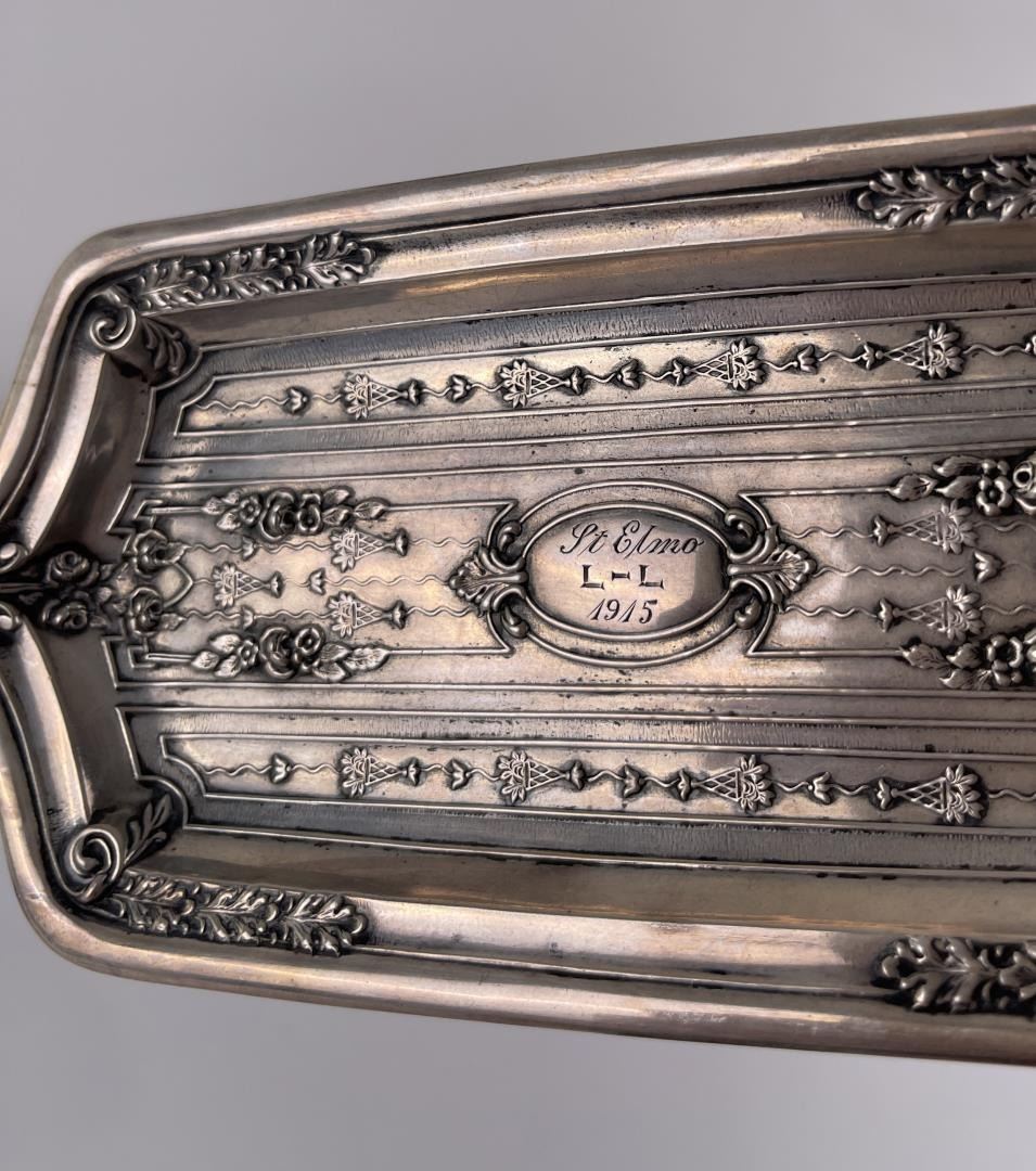 Engraved Lt Elmo L-L, 1915. 6 5/8" long, 3 1/4" wide. 65 grams total weight.