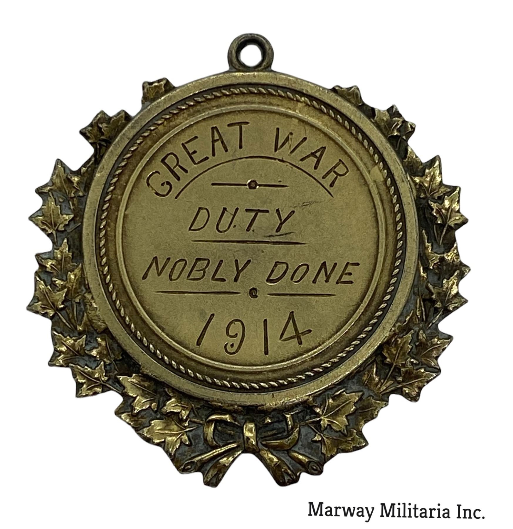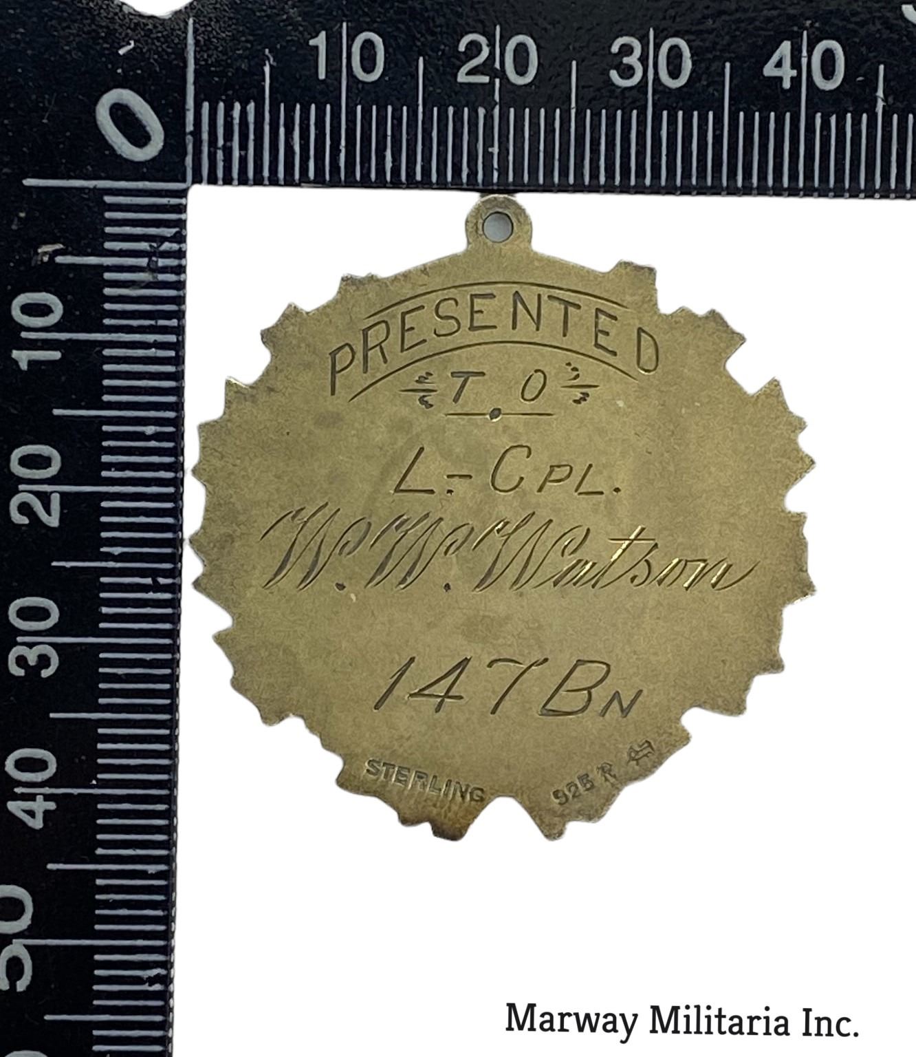 Presented to L CPL W W WATSON who was from Proton Township Grey County Ont. Sterling Hallmarked. Front reads GREAT WAR DUTY NOBLY DONE 1914.