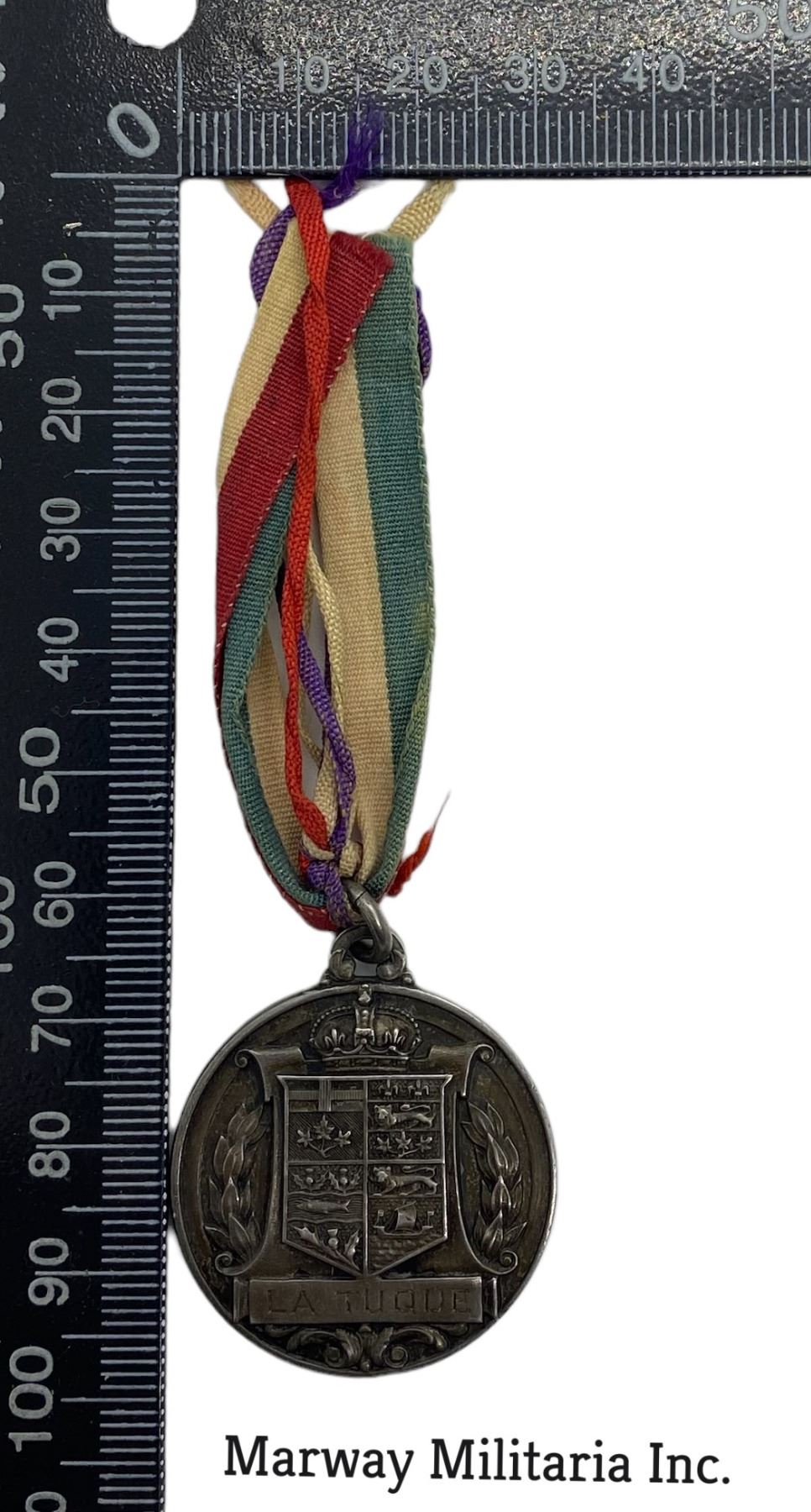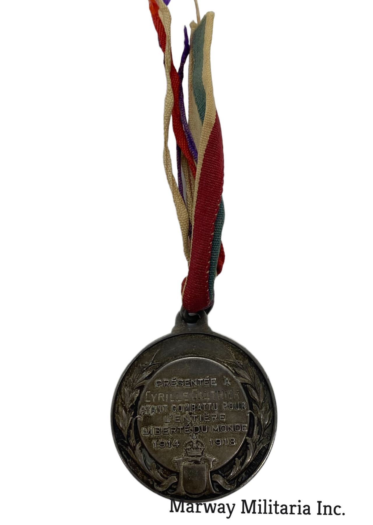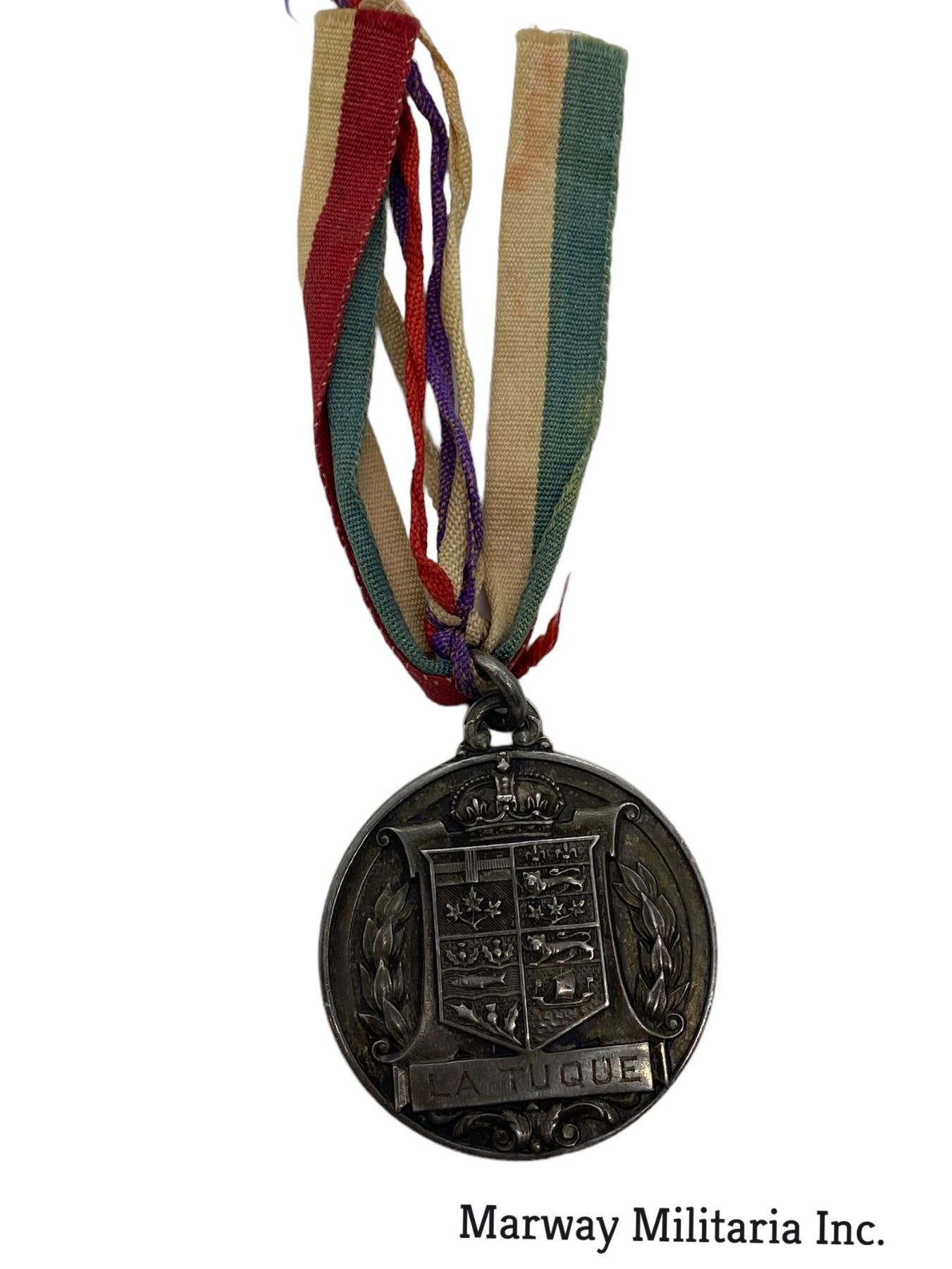 Lot of 2. Engraved on front engraved LA TUQUE, on back CYRILLE GAUTHIER. Suspended from ribbon. Included his lined discharge paper.