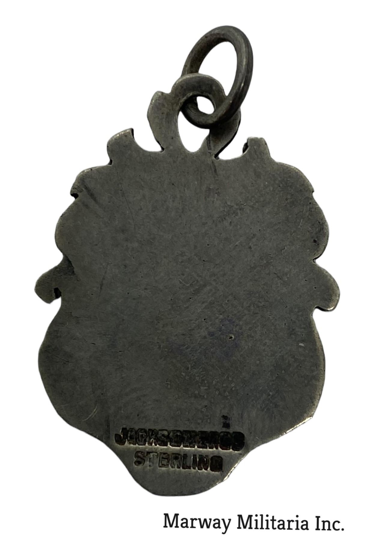 Shield design, Words GREAT WAR 1914- 19, FROM TOWN OF FT SASK. Maker stamped & STERLING On Back. Not named.