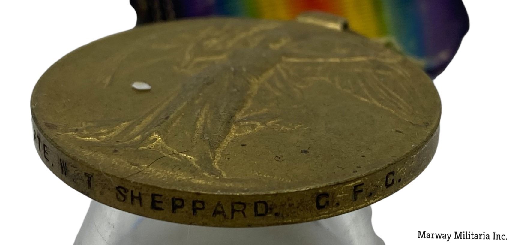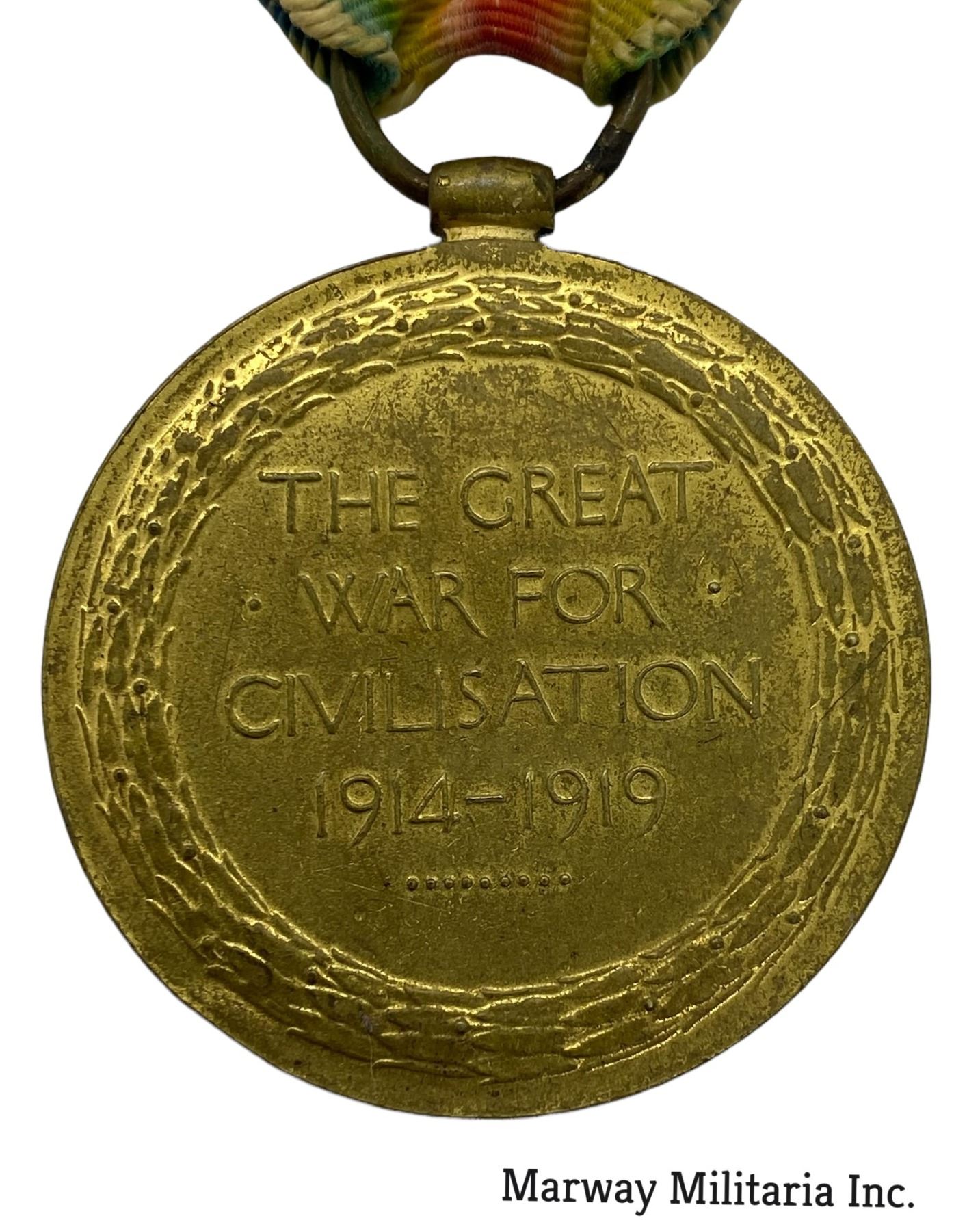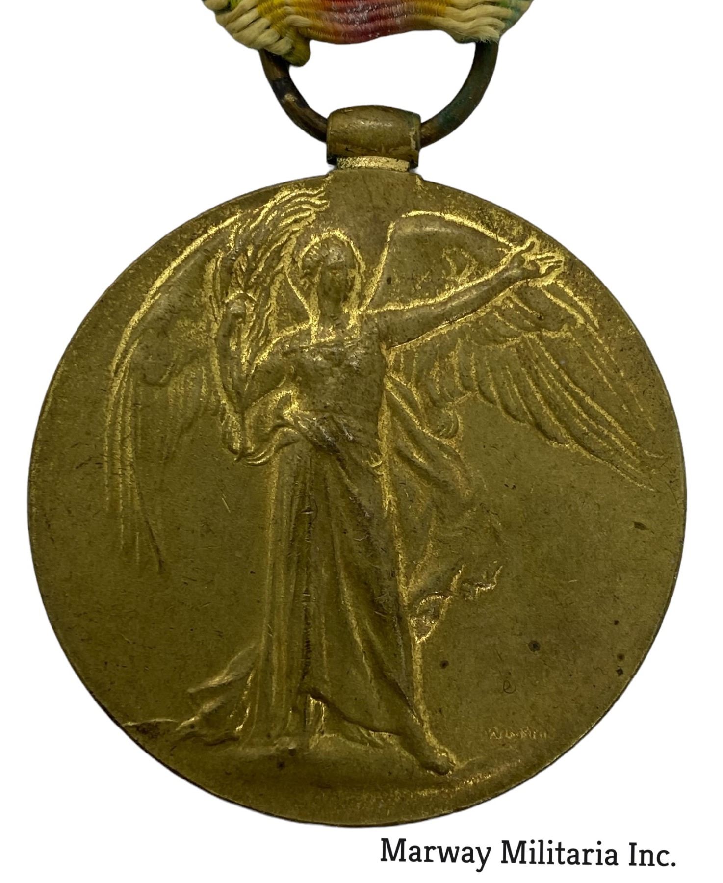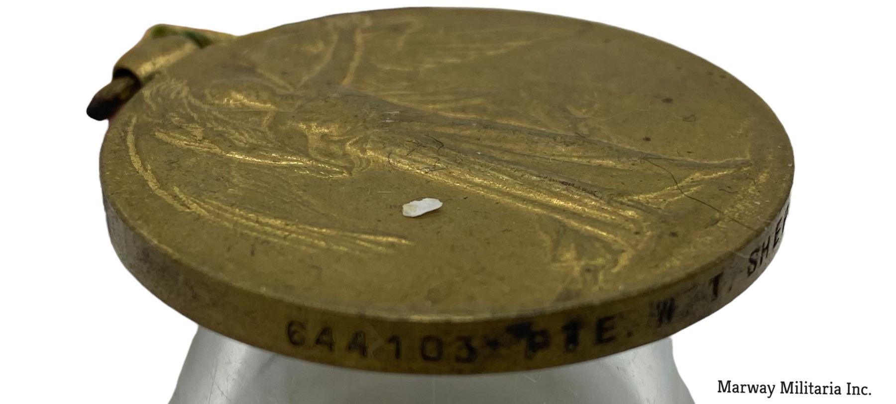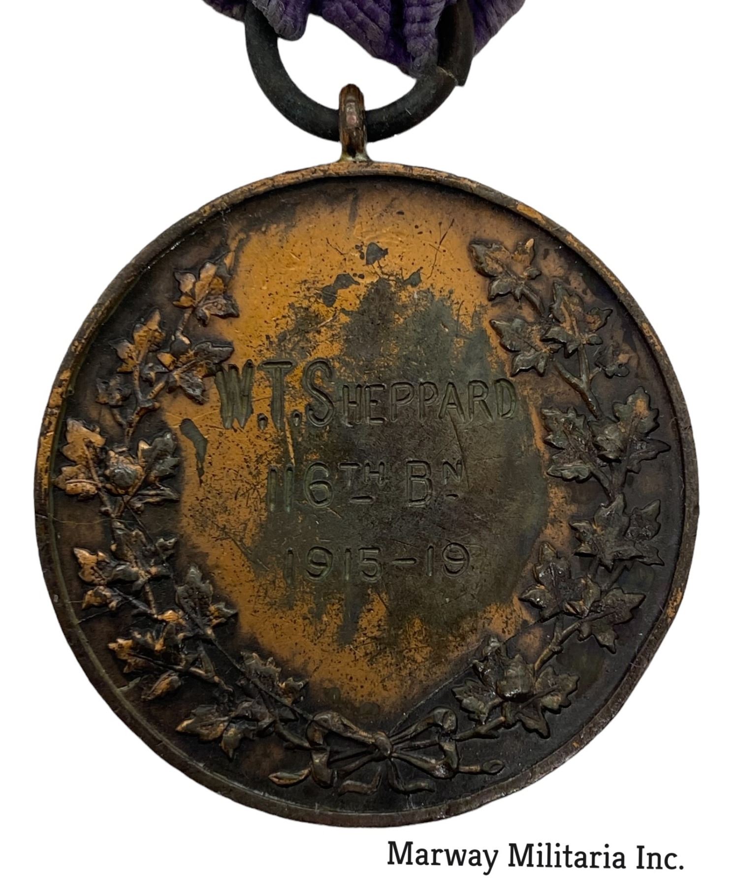 Lot of 2. Welcome home medal from Orillia Ontario engraved on back WT SHEPPARD 116TH BN 1915-19. Enlisted with the 157th. Victory Medal impressed 644103 PTE W T SHEPPARD CFC