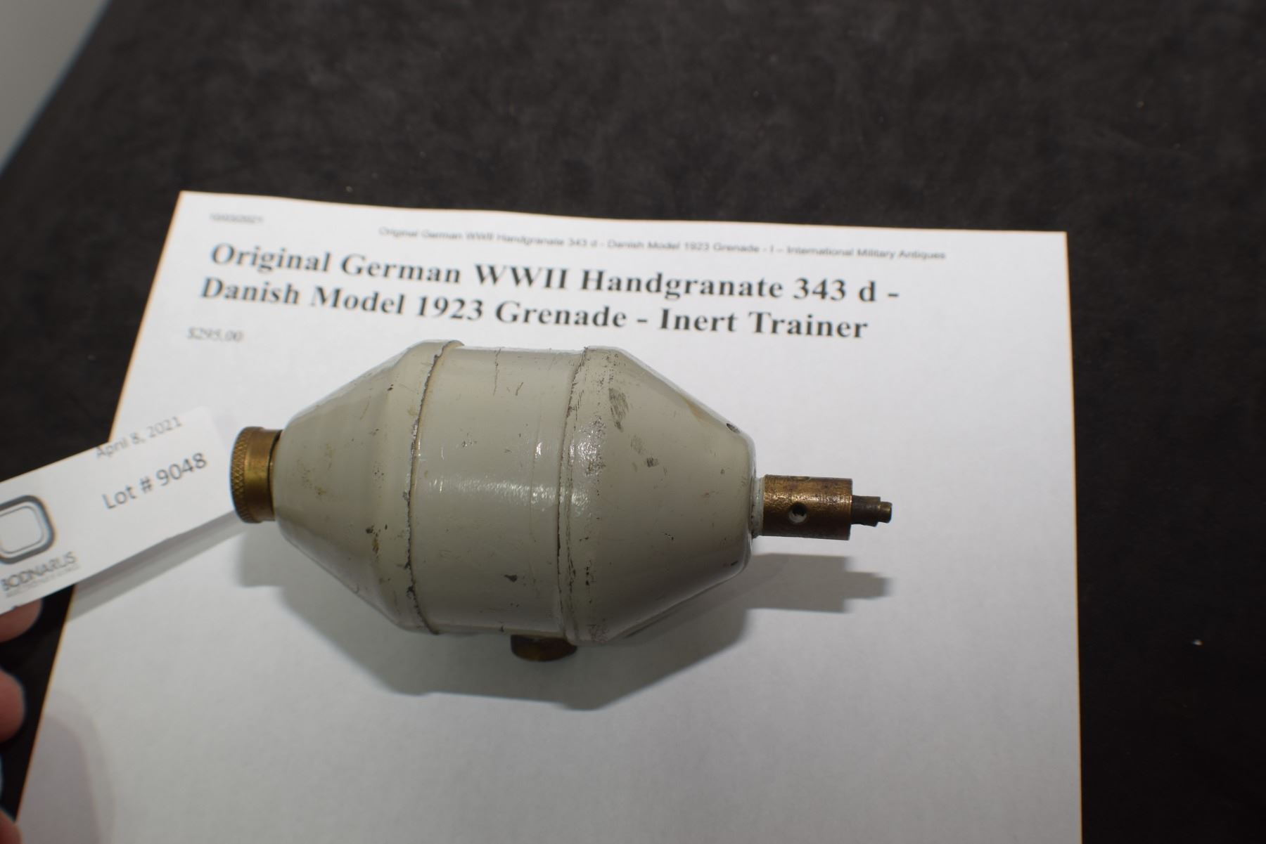 WW11 GERMAN HANDGRANATE 343D INERT TRAINER DANISH MODEL 1923 GRENADE