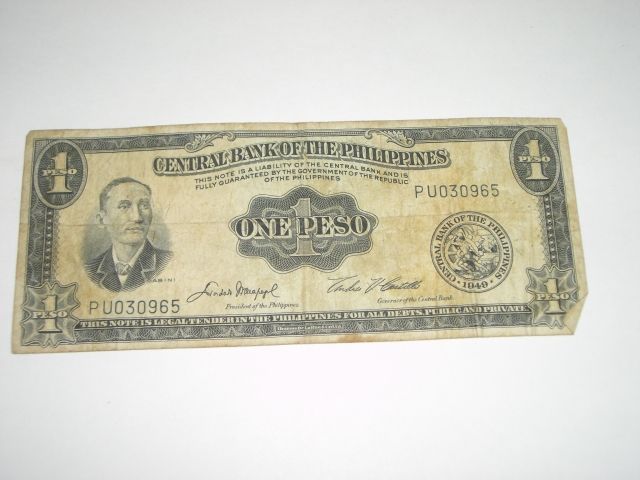 WW2 1949 1 PESO *PHILIPPINES - CENTRAL BANK OF THE PHILIPPINES*!! ***Coin, Currency & All Items Listed in this auction - Grades, Conditions and Values are not Safe Deposit Coins LLC Responsibilty. Grades, Condition and Values are determined by Consigner(s) & Buyers ONLY***