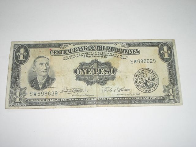 WW2 1949 1 PESO *PHILIPPINES - CENTRAL BANK OF THE PHILIPPINES*!! ***Coin, Currency & All Items Listed in this auction - Grades, Conditions and Values are not Safe Deposit Coins LLC Responsibilty. Grades, Condition and Values are determined by Consigner(s) & Buyers ONLY***