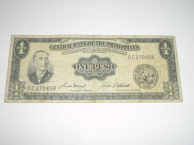 WW2 1949 1 PESO *PHILIPPINES - CENTRAL BANK OF THE PHILIPPINES*!! ***Coin, Currency & All Items Listed in this auction - Grades, Conditions and Values are not Safe Deposit Coins LLC Responsibilty. Grades, Condition and Values are determined by Consigner(s) & Buyers ONLY***