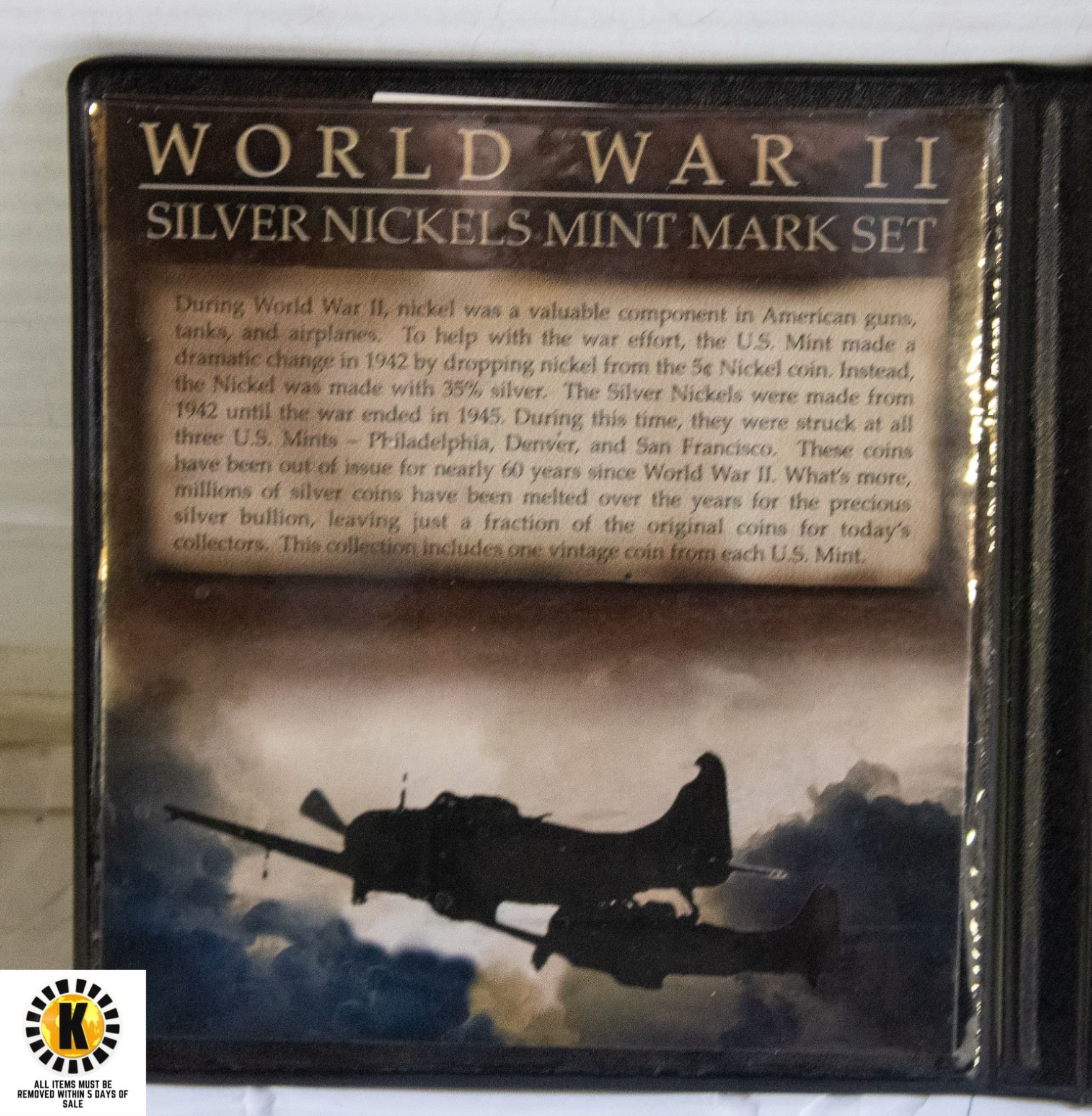 WW2 3 SILVER NICKELS MINT MARK SET U.S.A