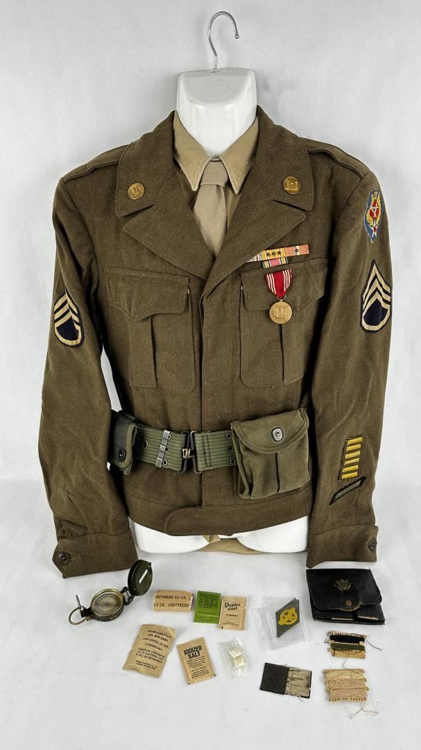 Includes Ike jacket, shirt, tie, web belt, pouches, Corps of Engineers compass, sewing kit, and more