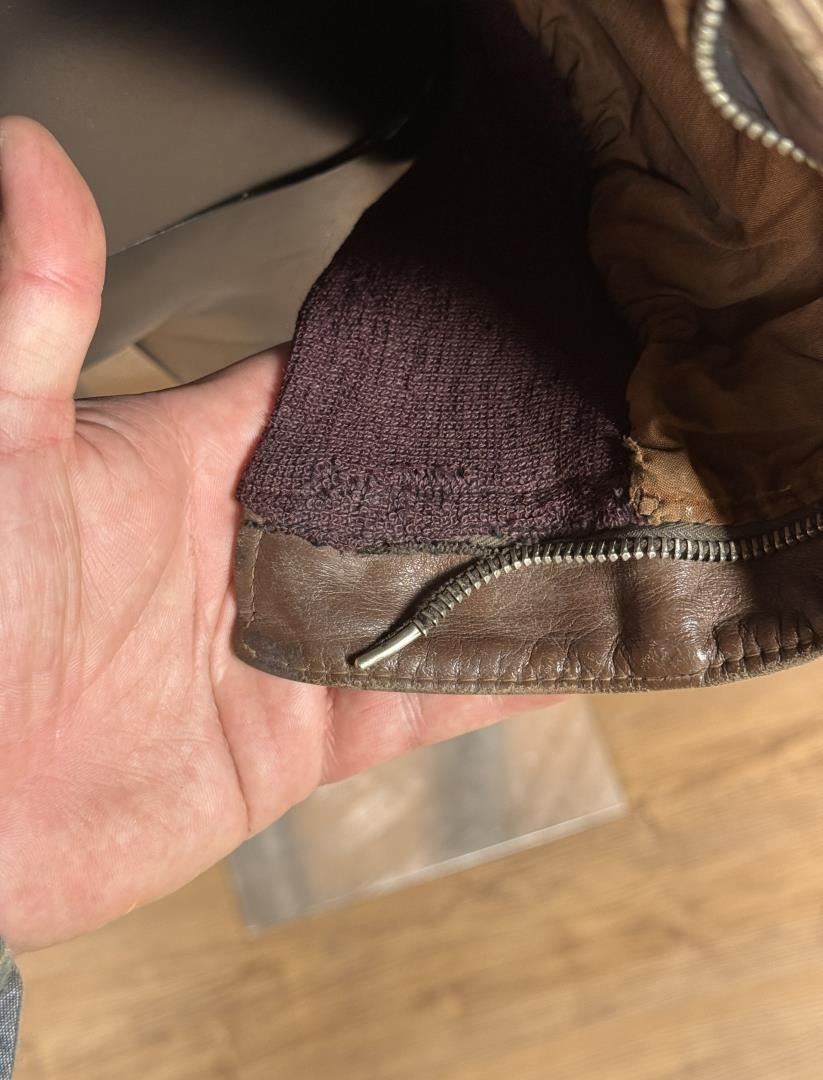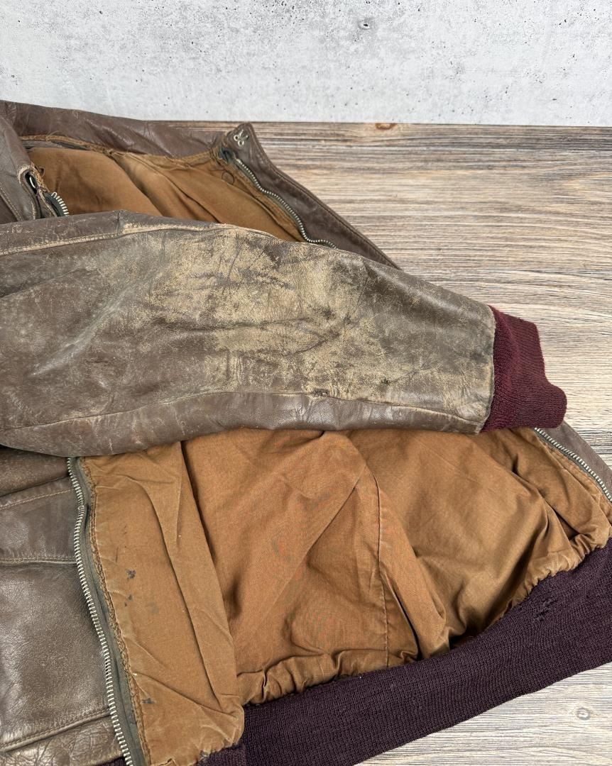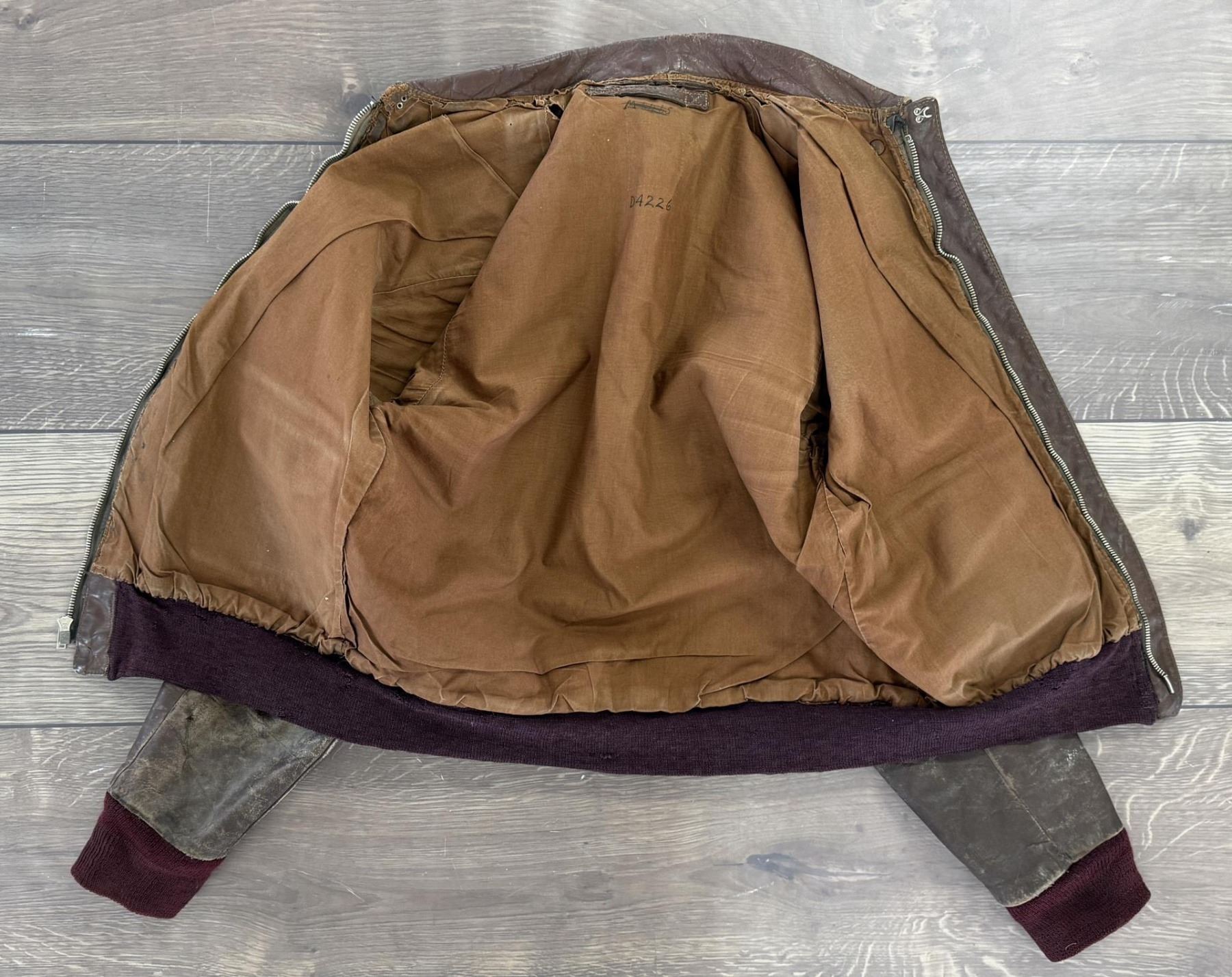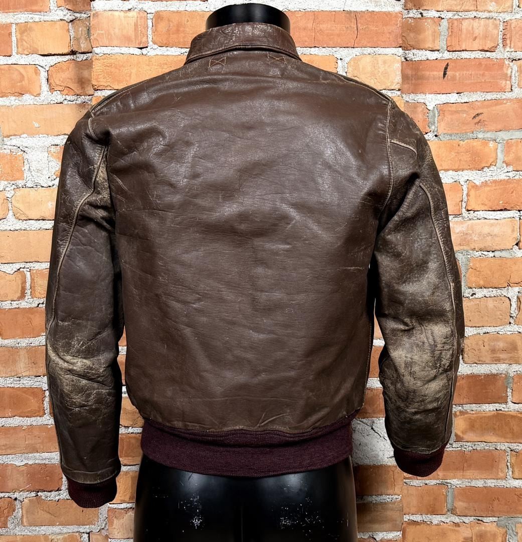 Yuma Army Air Field patch. 22" across the chest by 20" long by 17" shoulder to shoulder. Jacket marked D4226 under the collar. Affixed to the left breast is a painted patch for the Yuma Army Air Field with the iconic Disney pattern logo depicting a furious coyote wielding a machine gun above the war cry Y-A-A-F!, handily translated to YUMA ARMY AIR FIELD in red text along the border. Yuma's Airfield began as a simple dirt field back in the 1920s, but was offered to the United States Government for use during World War II. Graduating its first classes in 1943, the field served as an advanced training ground for a variety of aircraft including multi-engine B-17 pattern and single engine T-6 trainers. After the war, the field served as a Marine Station, Air Force Base, and even an International Airport