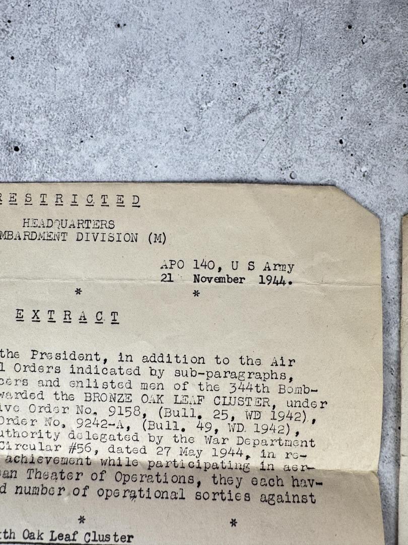 Grouping related to a Soldier Killed in Action. 495th Bomb Squadron 344th Bomb Group.