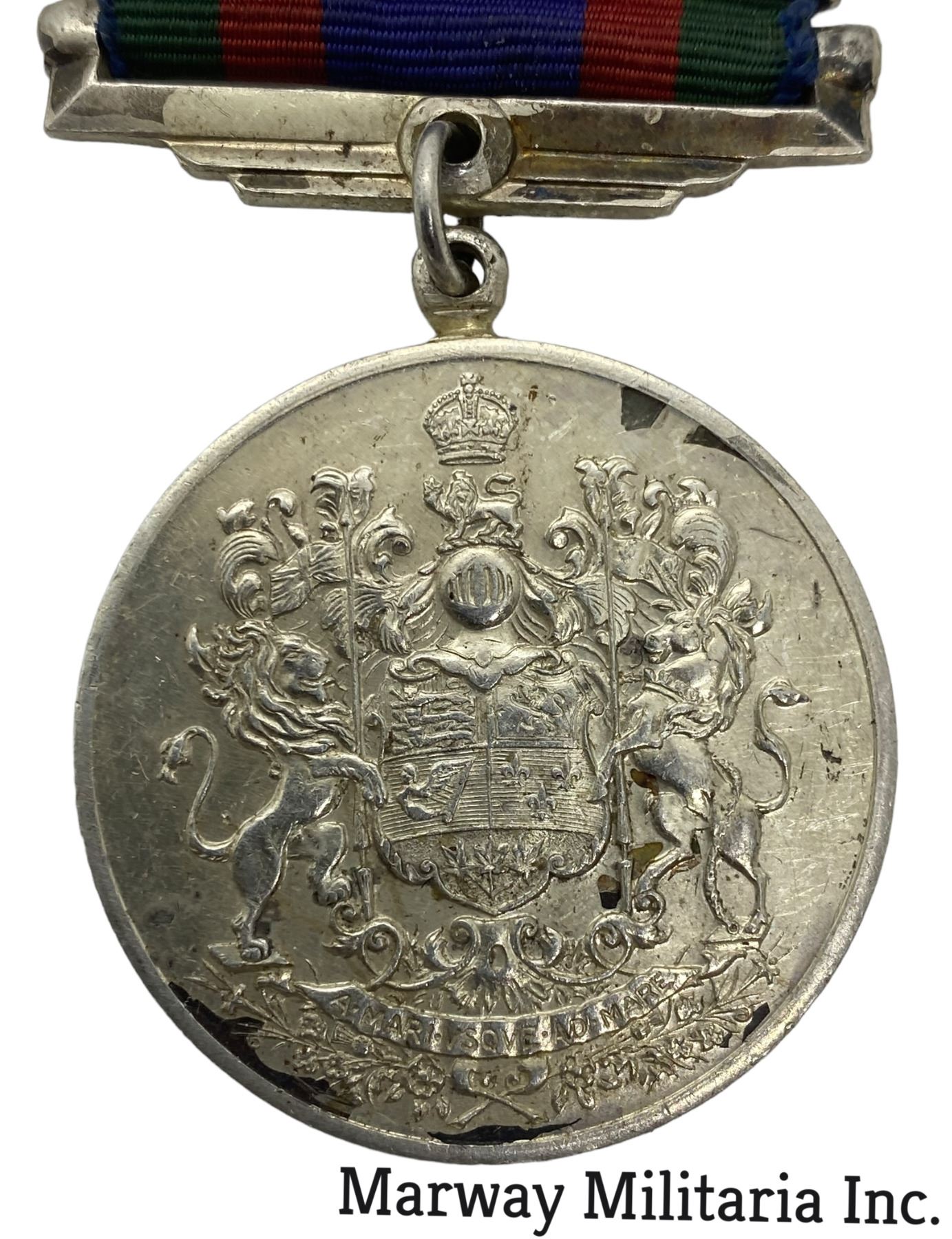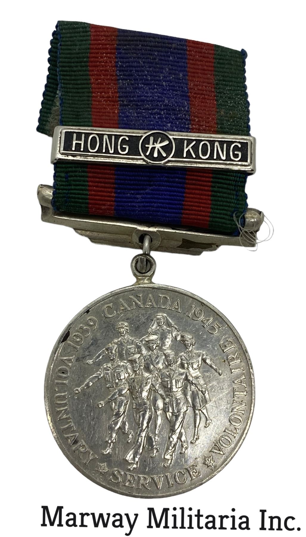 Genuine Silver metal Canadian Volunteer Service Medal, with Hong Kong Bar.