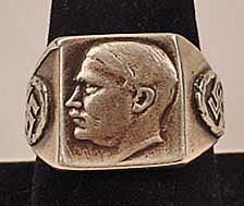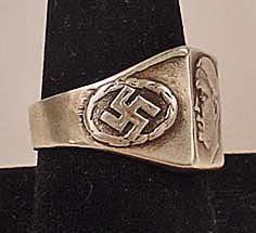 WW2 ERA ADOLF HITLER GERMAN NAZI RING W/ SWASTIKA - Very Unusual. Size 12