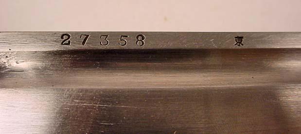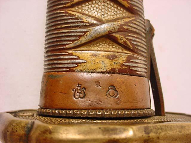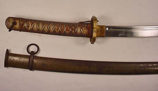 WW2 ERA JAPANESE MILITARY SAMURAI SWORD W/ SCABBARD - Marked on Blade "27358" with Hallmark. Also Marked with 3 Hallmarks above the Knuckle Guard. Approx. 36.25 long