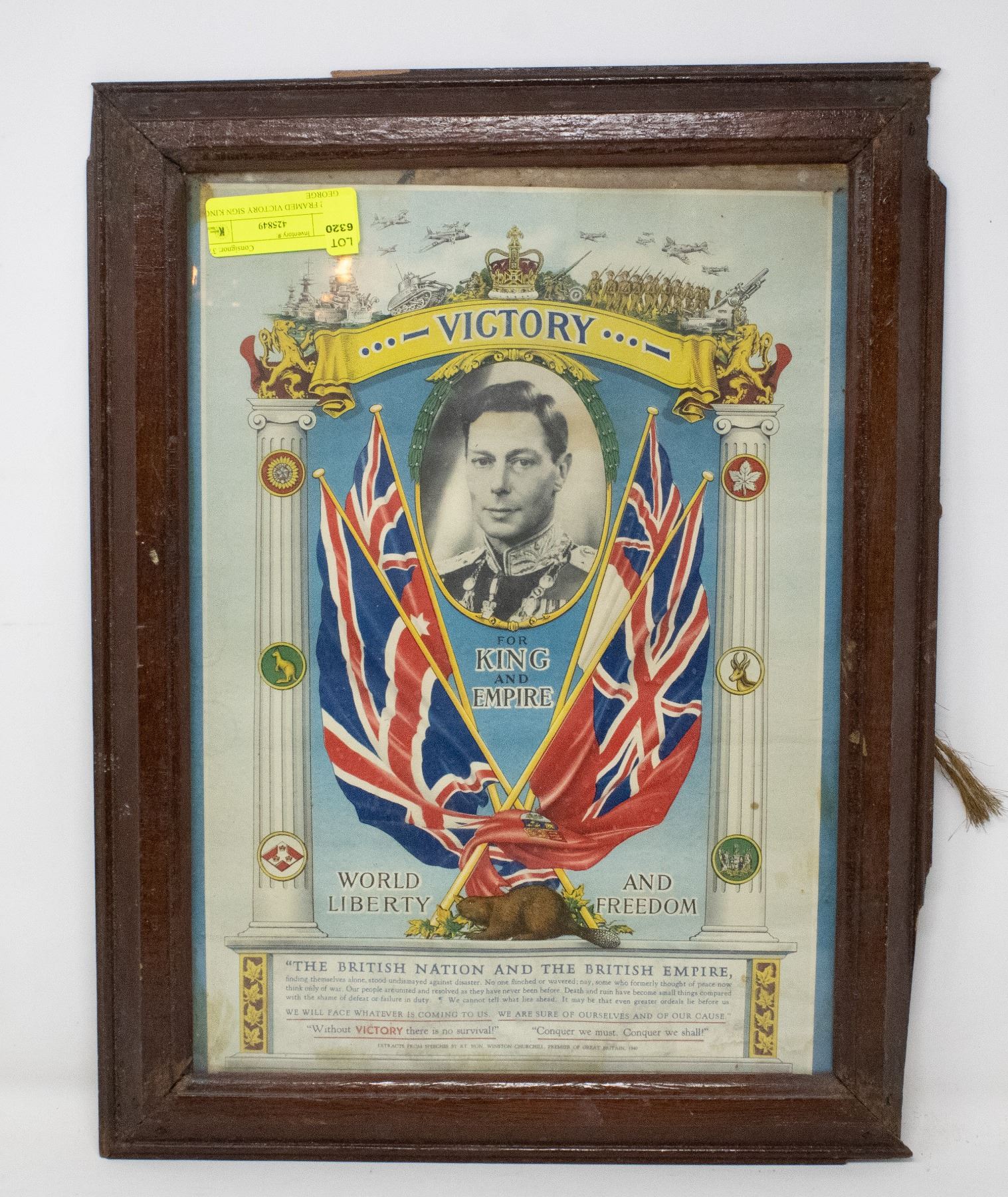 WW2 FRAMED VICTORY SIGN KING GEORGE