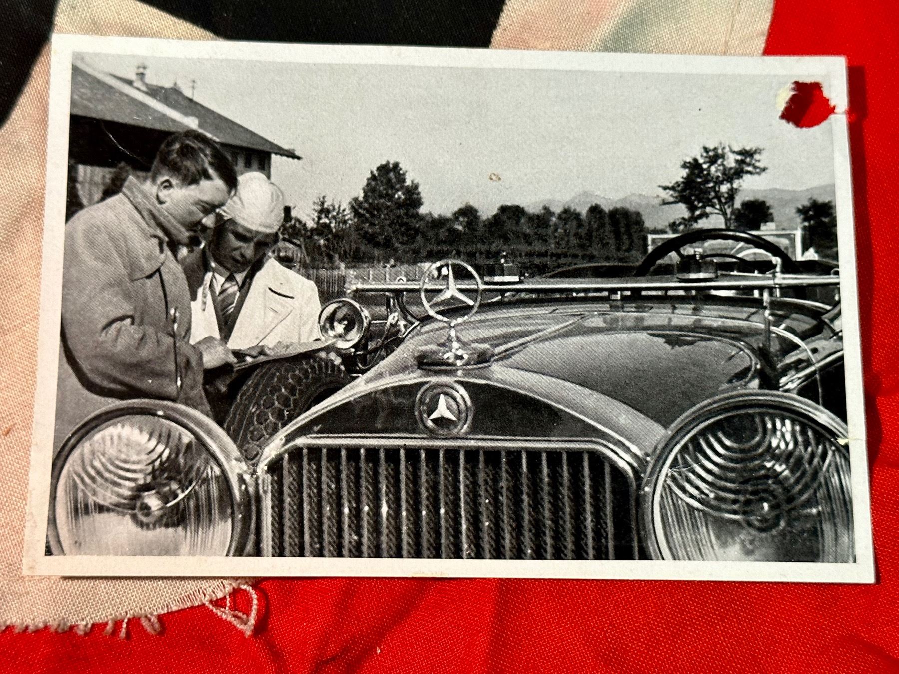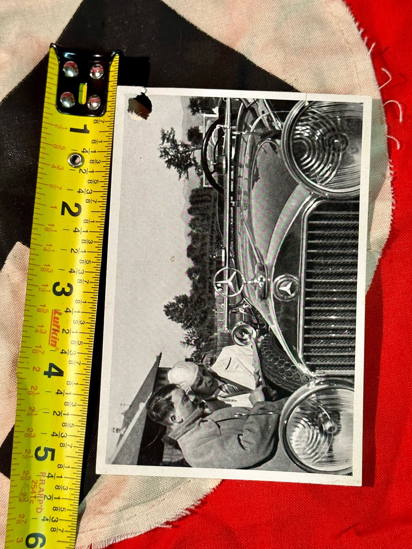 WW2 GERMAN ADOLF HITLER STANDING NEAR HIS MERCEDES BENZ PHOTOGRAPH. A RARE FIND. IT IS IN MINT OVERALL SHAPE AND CONDITION WITH A BEAUTIFUL OVERALL PATINA. SHOWS GOOD WEAR AND USE. PLEASE VIEW ALL DETAILED PICTURES. A GREAT FIND AND AN EXCELLENT ADDITION TO YOUR COLLECTION.
