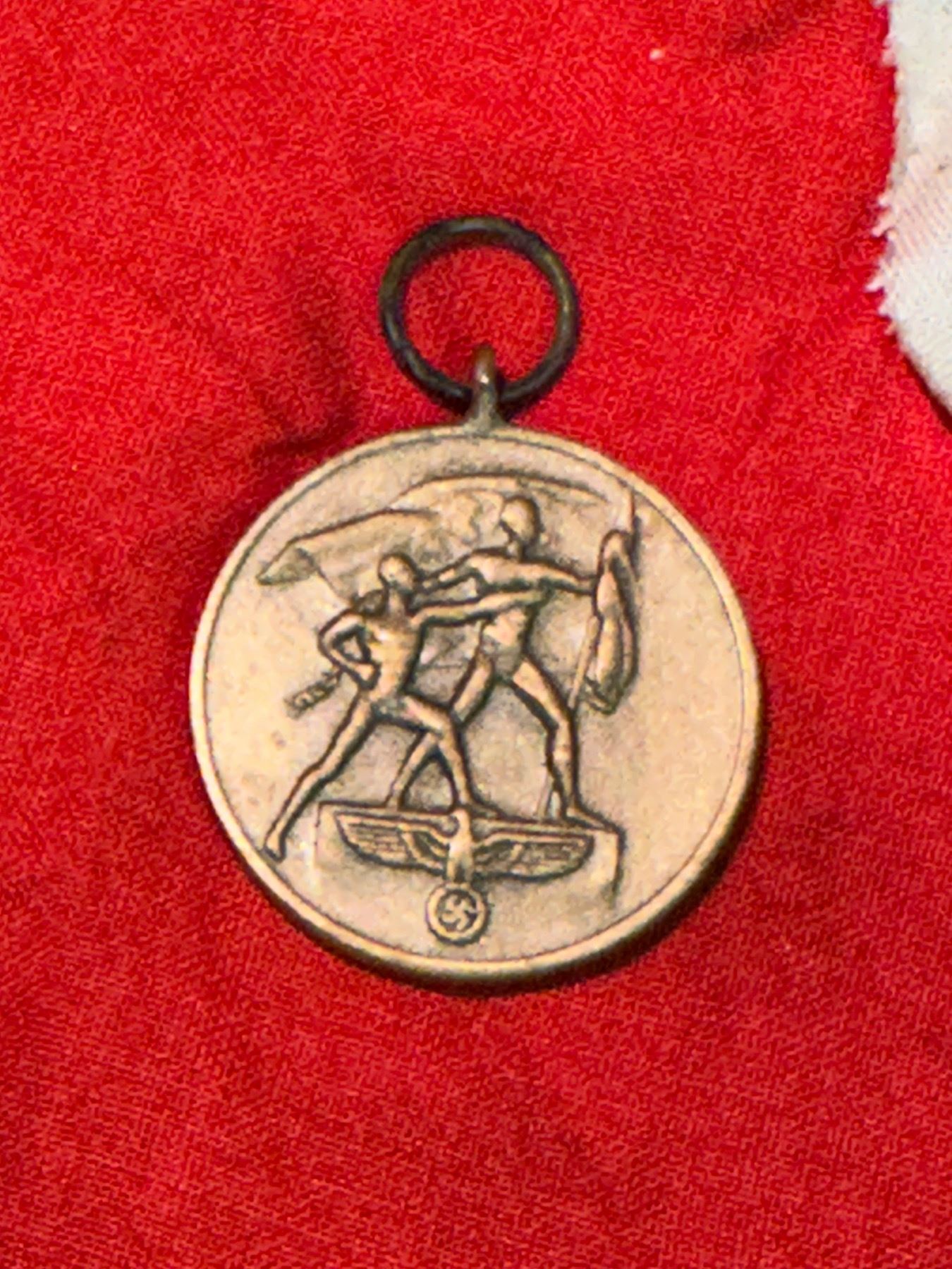 WW2 GERMAN CZECH CONQUEST MEDAL. A RARE FIND. IT IS IN MINT OVERALL SHAPE AND CONDITION WITH A BEAUTIFUL OVERALL PATINA. SHOWS GOOD WEAR AND USE. PLEASE VIEW ALL DETAILED PICTURES. A GREAT FIND AND AN EXCELLENT ADDITION TO YOUR COLLECTION.
