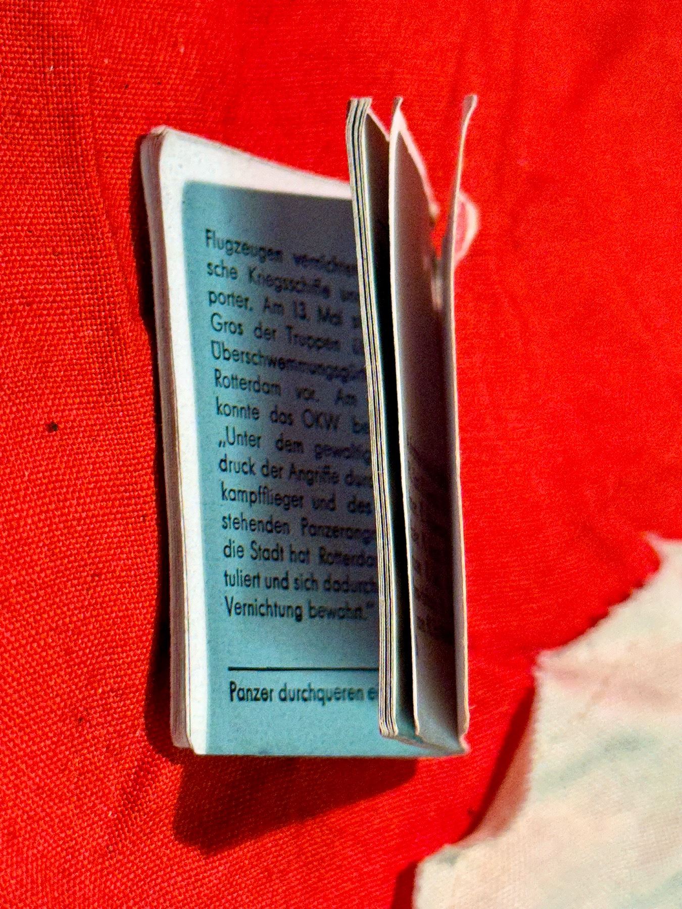 WW2 GERMAN DES FUHRERS KAMPF IN HOLLAND MINIATURE BOOKLET. IT IS IN MINT OVERALL SHAPE AND CONDITION WITH A BEAUTIFUL OVERALL PATINA. SHOWS GOOD WEAR AND USE. PLEASE VIEW ALL DETAILED PICTURES. A GREAT FIND AND AN EXCELLENT ADDITION TO YOUR COLLECTION.