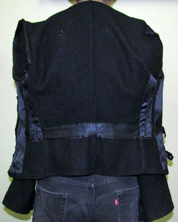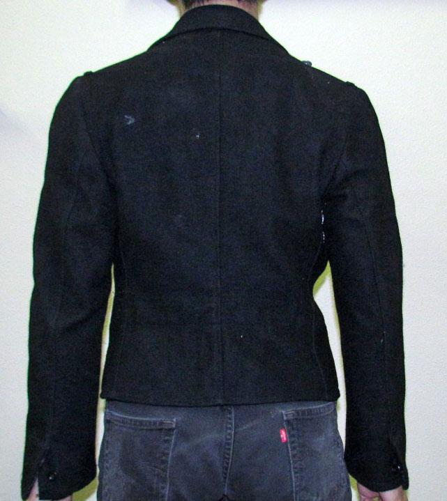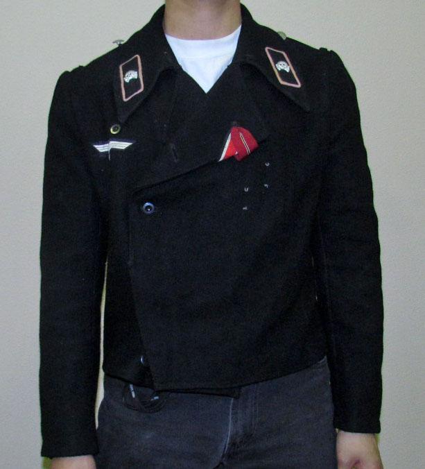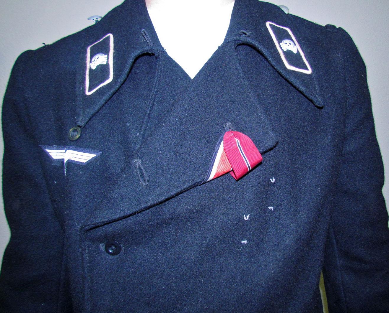 Medium size. Incl. panzer breast eagle, pink piped collar tabs and iron cross and easter front medal ribbons sewn on the flap. Black wool.