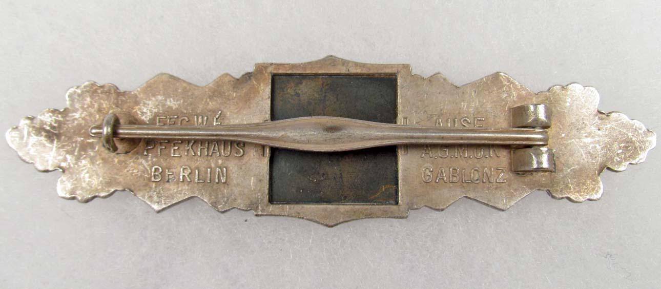 Awarded for 30 days close combat. Maker marked Fec W E Peekhaus Berlin Ausf A G M u K Gablonz. Wide fluted horizontal pinback.