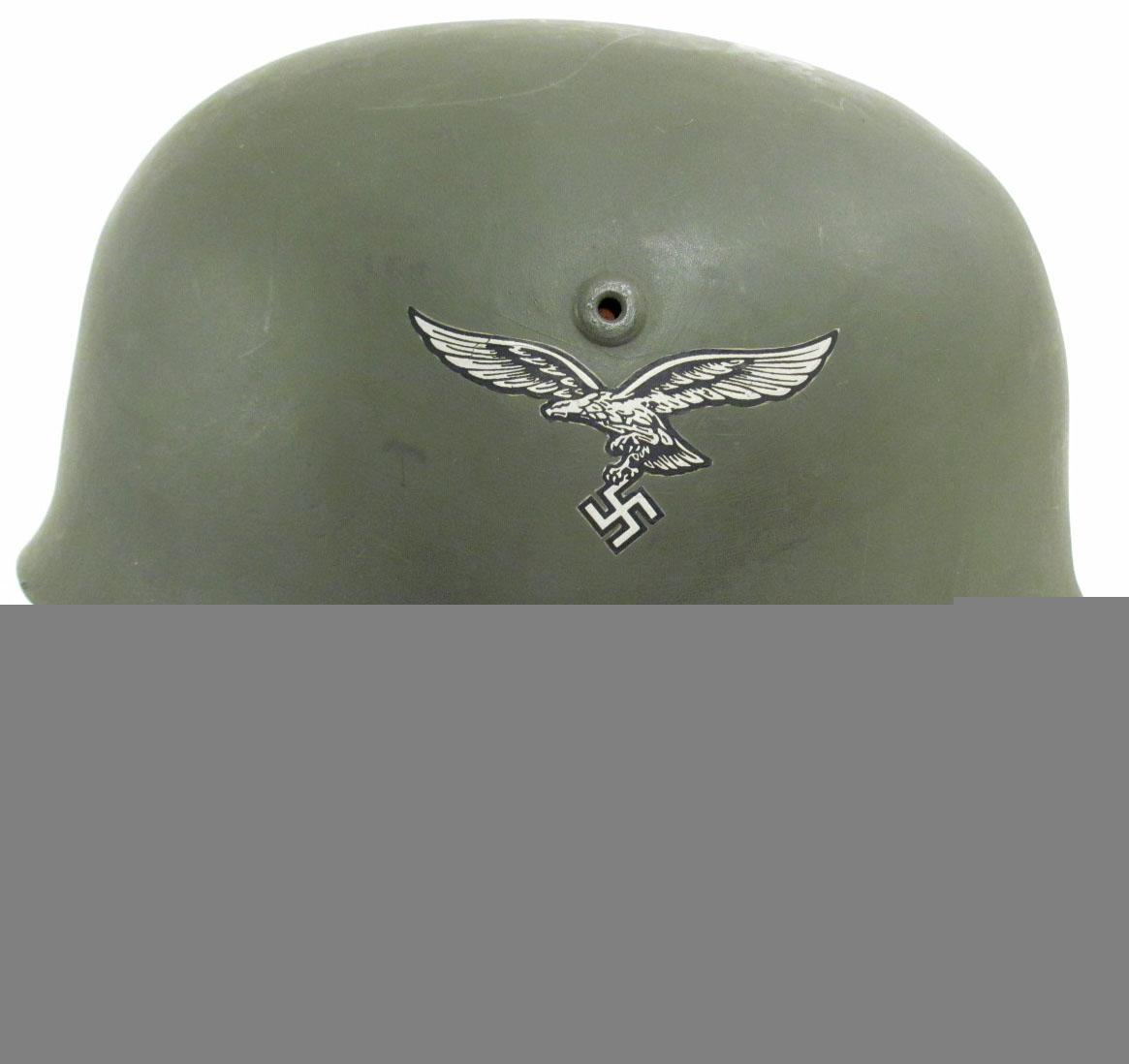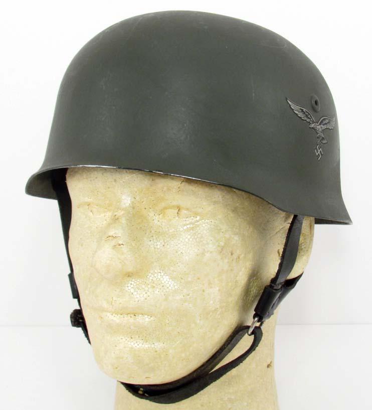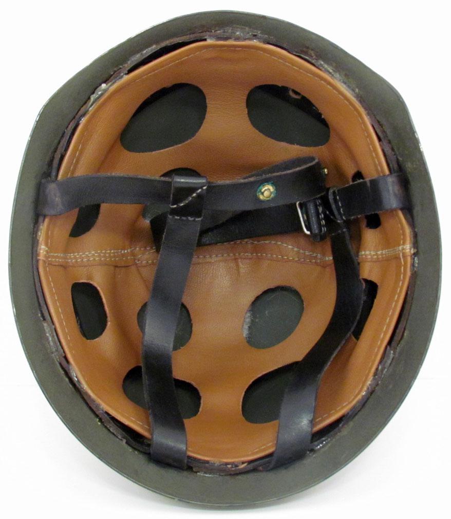 Helmet shell has been modified to resemble a paratrooper helmet. Incl. leather liner w/ chin straps.