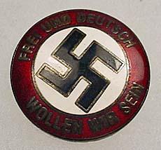 WW2 GERMAN NAZI ENAMELED BADGE / PINBACK - Reads on front Frei Und Deutsch Wollen Wir Sein. Maker marked Ges Gesch