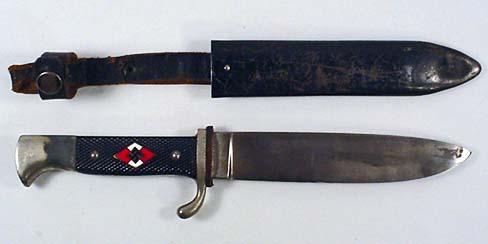 WW2 GERMAN NAZI HITLER YOUTH KNIFE AND SCABBARD W/ LEATHER HANGER