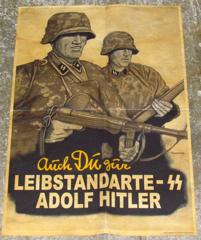 WW2 GERMAN NAZI POSTER PROMOTING LEIBSTANDART - SS ADOLF HITLER - Approx. 34" x 23.5"
